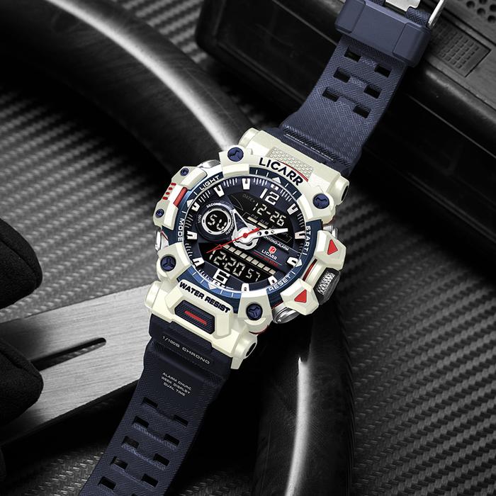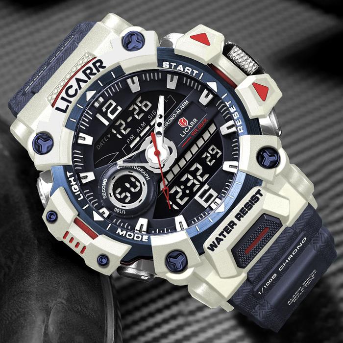 Jam Tangan Pria LICARR 9535 Fashion Original Analog Digital Kalis Air Alarm Kalender Stopwatch 9535
