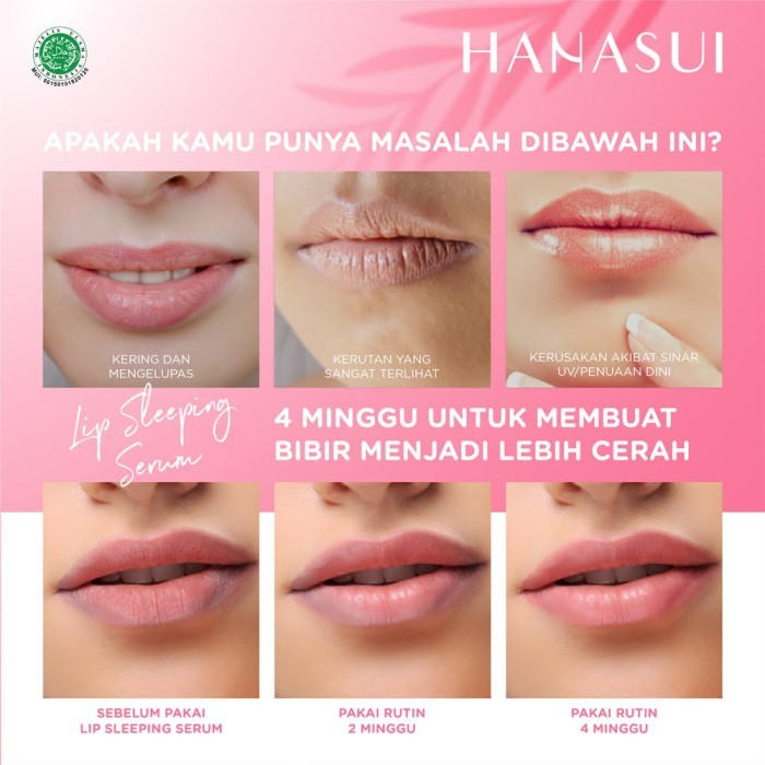 Hanasui Lip Sleeping Serum - Melembabkan Merawat Bibir Kering & Pecah Pecah Mencerahkan Bibir Secara Alami