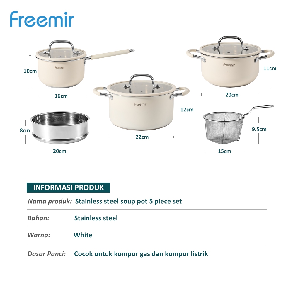 [Star]Gratis Ongkir freemir Panci Set 8 Panci Stainless Steel Panci Anti Karat Panci Serbaguna Panci Rebus Aestethic