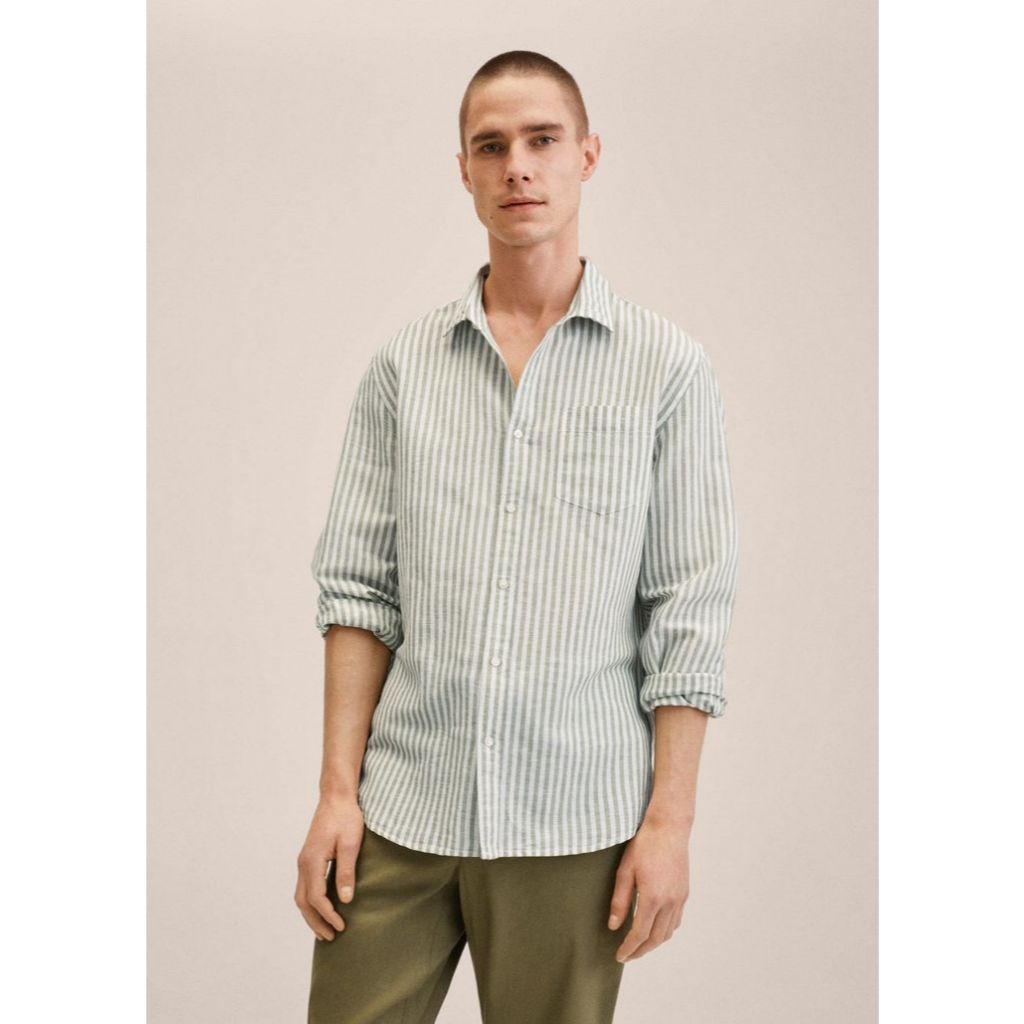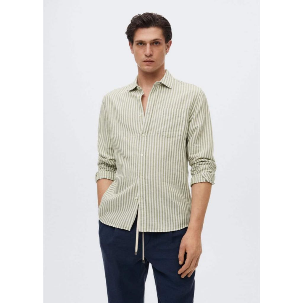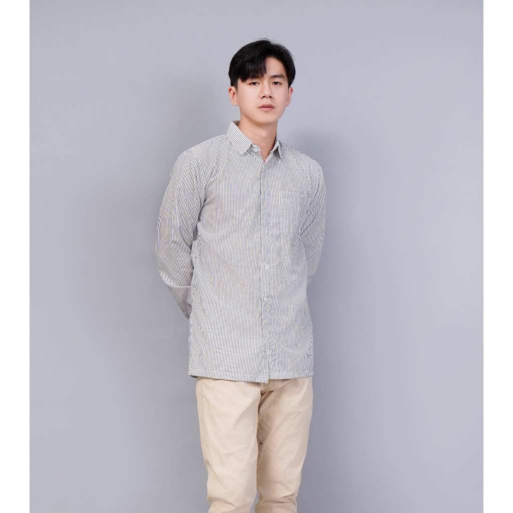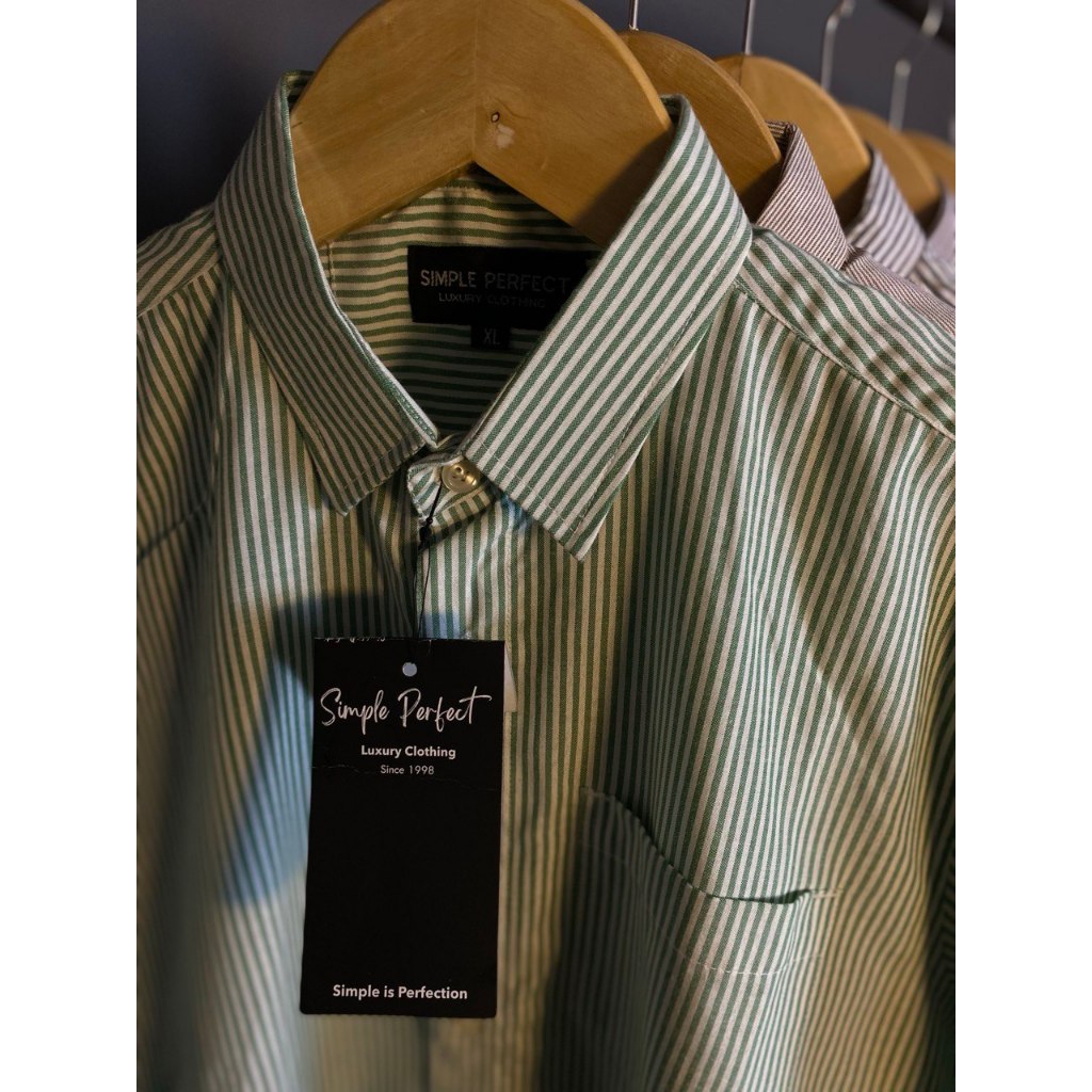 Kemeja Pria Stripe Garis Lengan Panjang Simple Perfect Bahan Katun Best Seller Premium