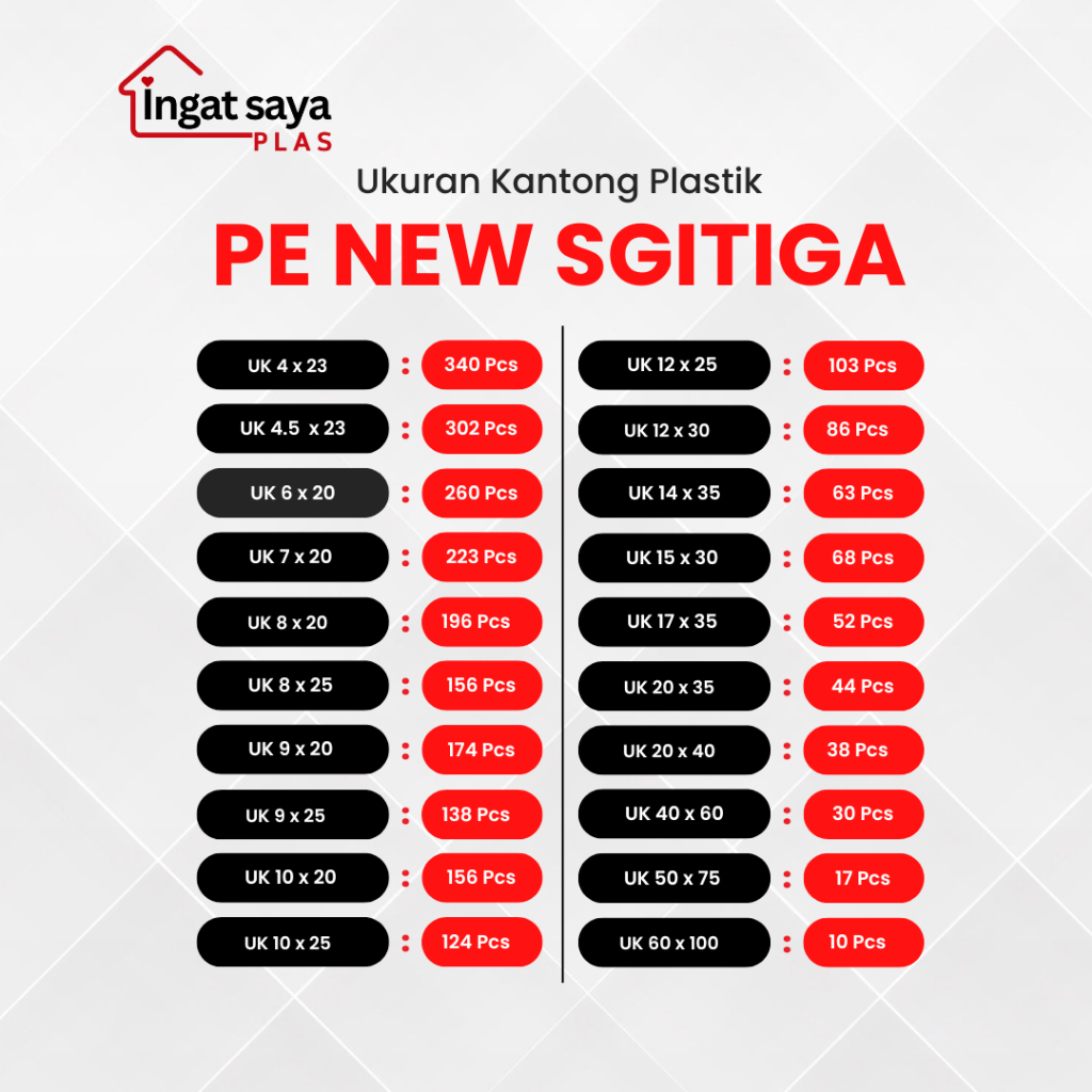 5 PACK - Pastik PE New Sgitiga Ukuran Kecil Tanggung Besar Jumbo | Plastik Es Batu - Plastik kiloan