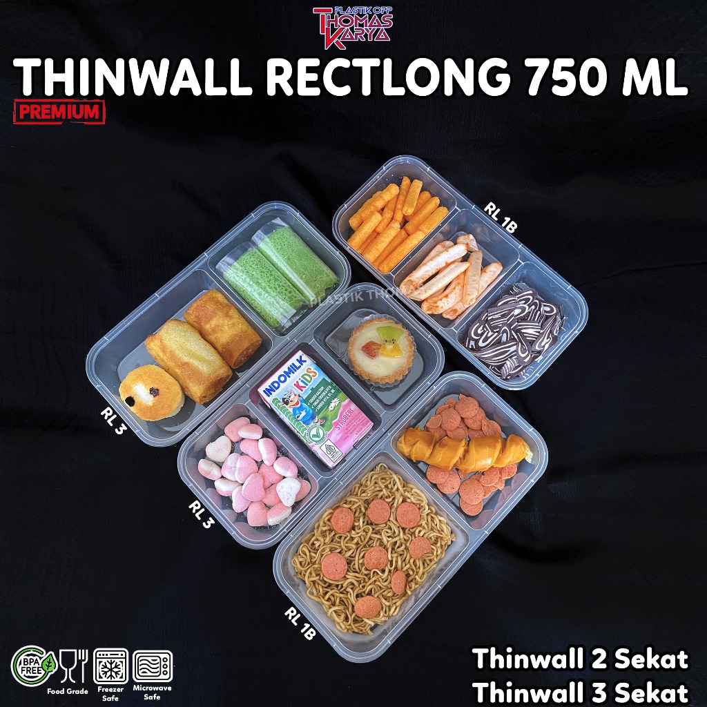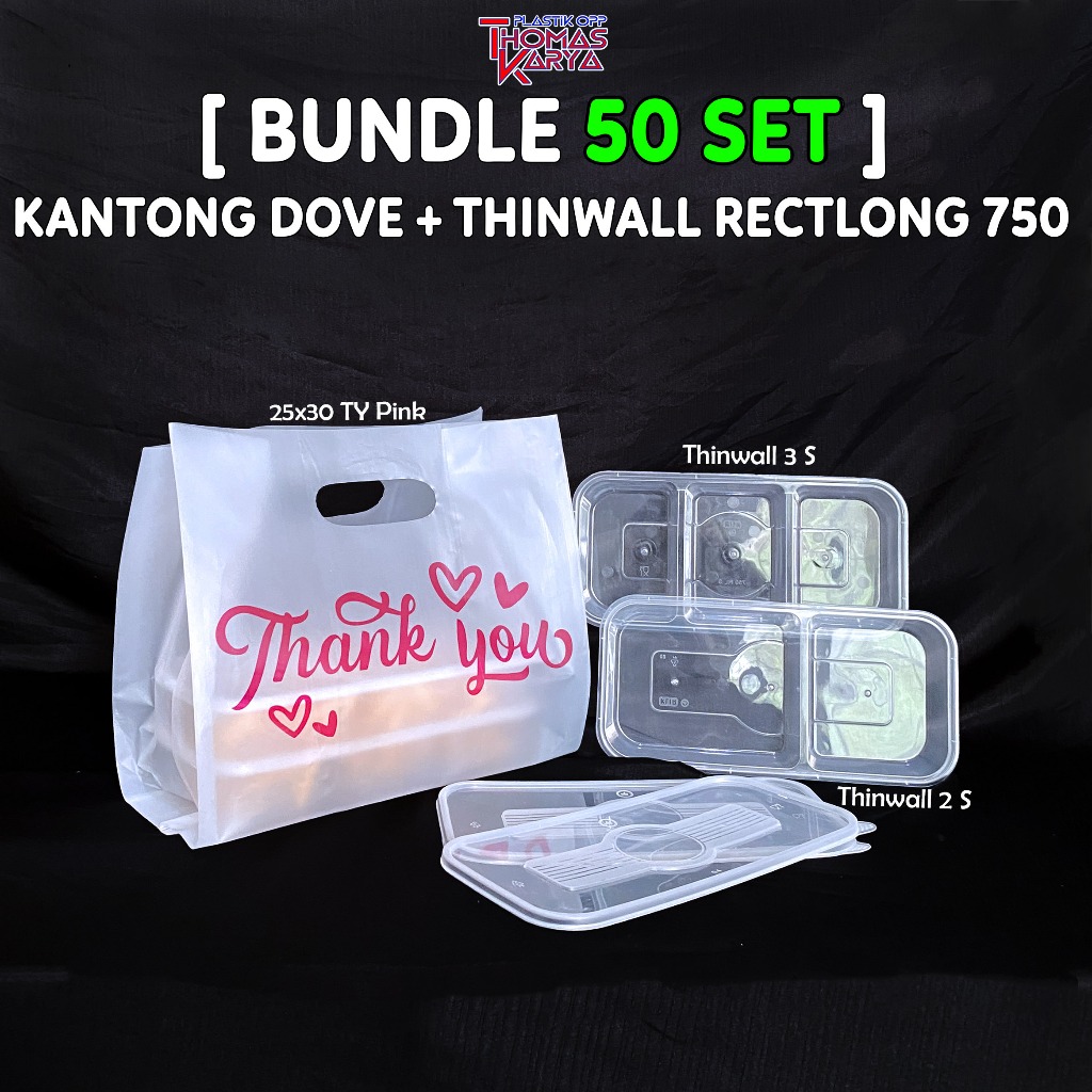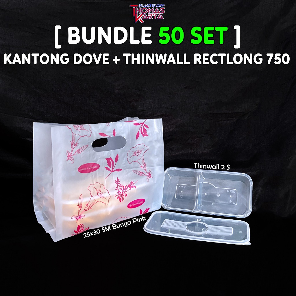 BUNDLE 50pcs Plastik Dove 25x30 + Thinwall 750ml Rectangle Long Sekat RL3 RL1B Wadah Plastik KLIR