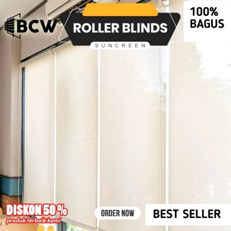 Roller Blind Outdoor Suncsreen BCW Headrail - Tirai Gulung Jendela Indoor Outdoor Termurah Custom