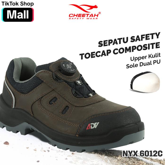(Kulit Asli) Sepatu Safety Cheetah ADV NYX 6012C Twist Lock System (TLS) - Brown Model Lower Cut - 6
