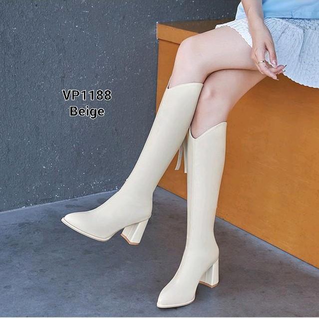 Wajib Up 1 Size Ya Boots Winter Overknee Leather Elastic 2 Model #Ky5762 #Vp1188 Shoes - Beige, 36