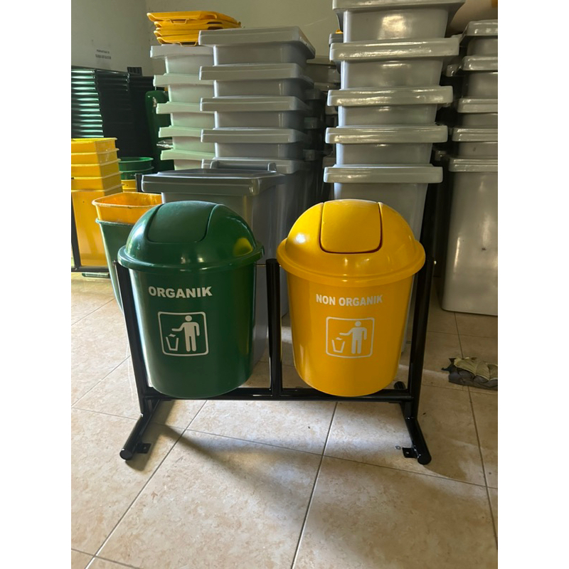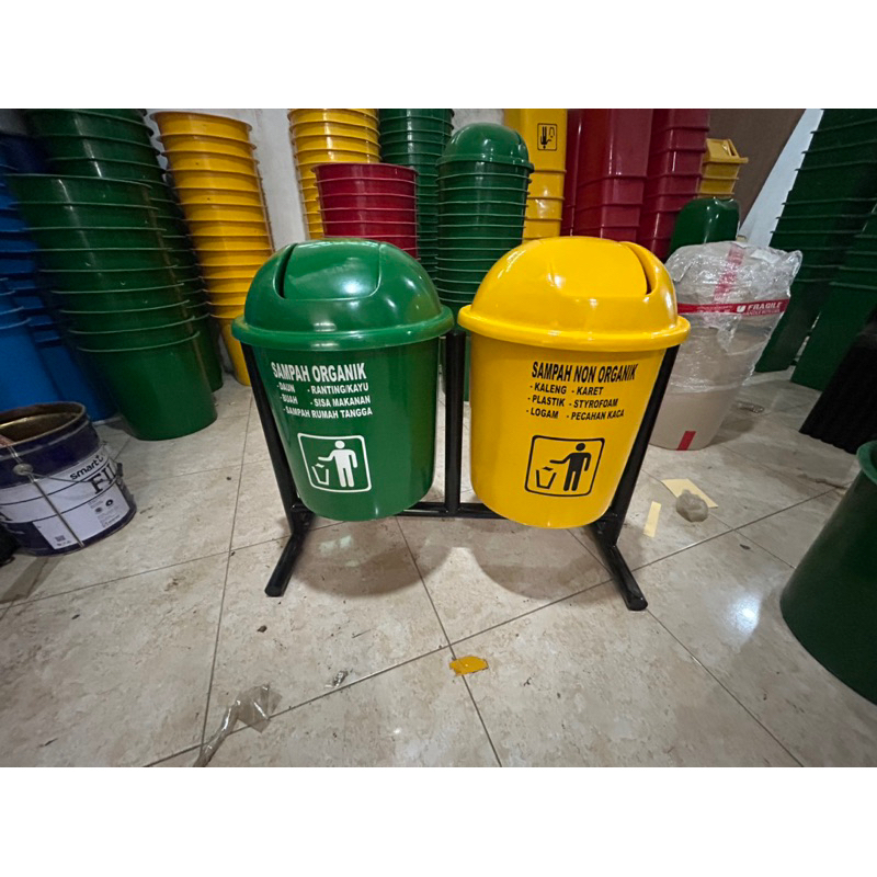 tempat sampah 2 pilah model bulat kapasitas 50 litter/tong, tempat sampah gantung