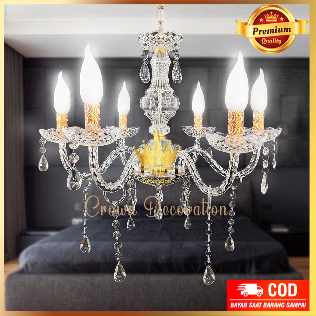 DISCON Lampu Lilin Chandelier Gantung Cabang 6&15 SUDAH TERMASUK LAMPU Kristal Akrilik Import Termurah