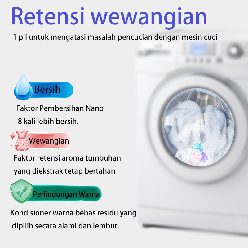 Laundry 7-in-1 dengan, 8x Kekuatan, Antibakteri, Sterilisasi, wangi tahan lama, Pembersih kapsul laundry, Berbentuk