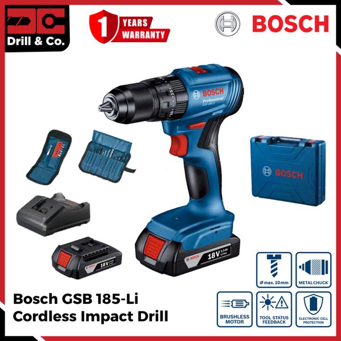 Bosch GSB 185-LI Cordless Brushless Impact Drill With Accessories / Mesin Bor Tembok Baterai Set
