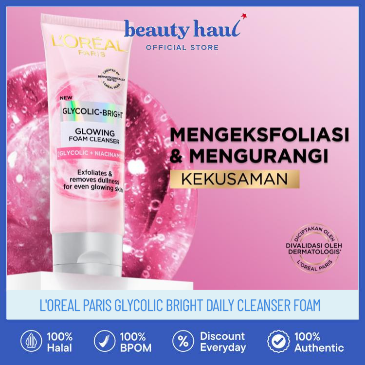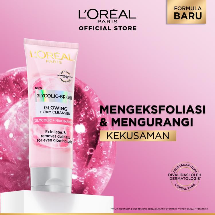 L'Oreal Paris Glycolic Bright Daily Cleanser Foam - 50/100ml Skin Facial Wash Loreal Glyco Acid AHA Exfoliating