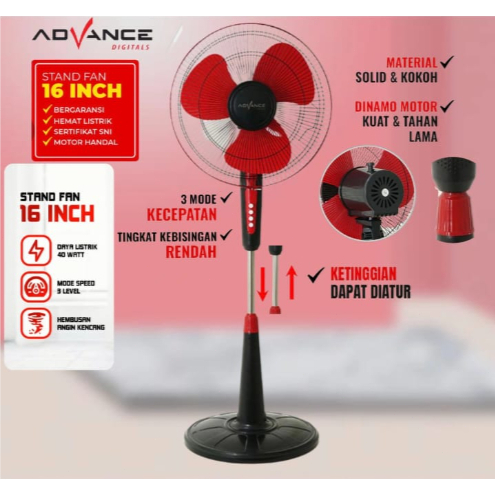 Kipas Angin Berdiri Advance SF16A/SF-16A 16inch 40Watt 3 Speed Hembusan Angin Kencang Garansi Resmi 1 Tahun Kipas Angin