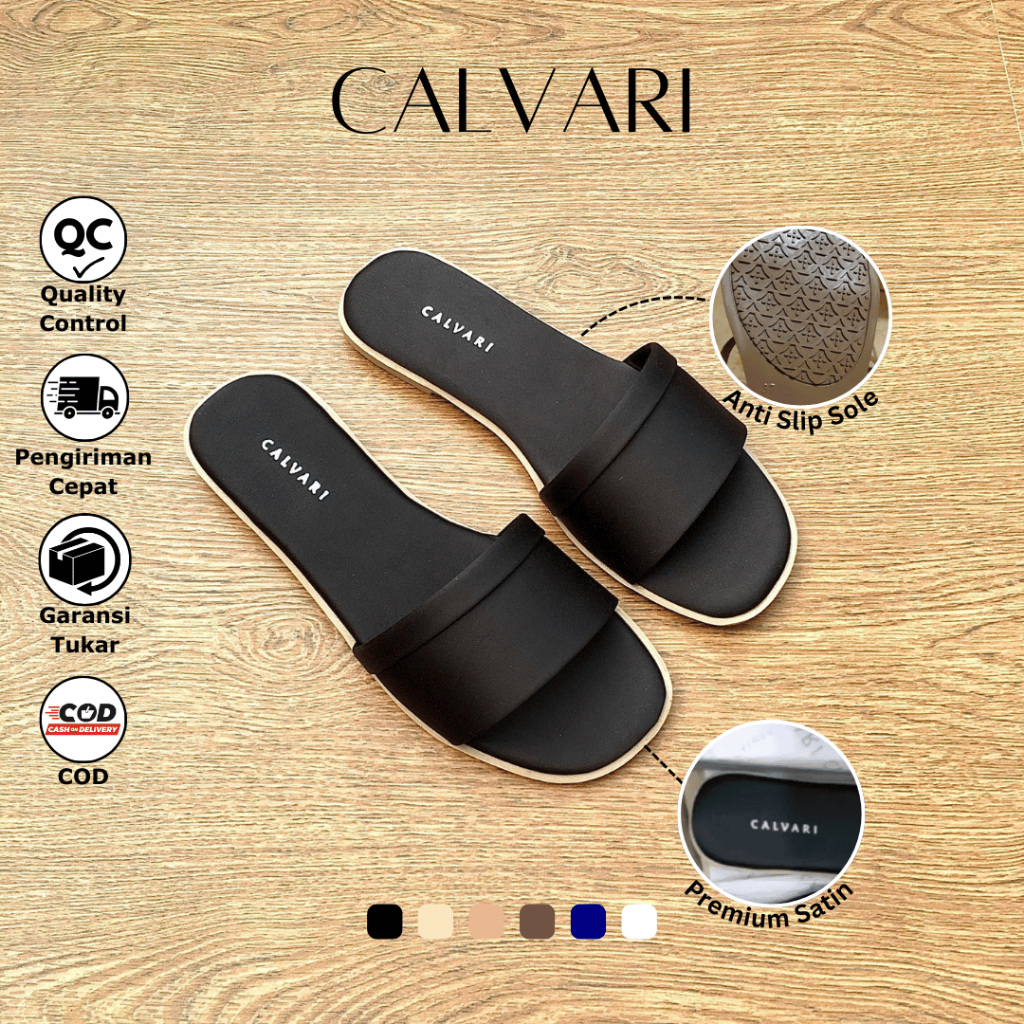 CALVARI - SEVI Sandal Wanita Korea Teplek Casual Kekinian Size 36 - 40 Sendal Flat Cewek Kasual