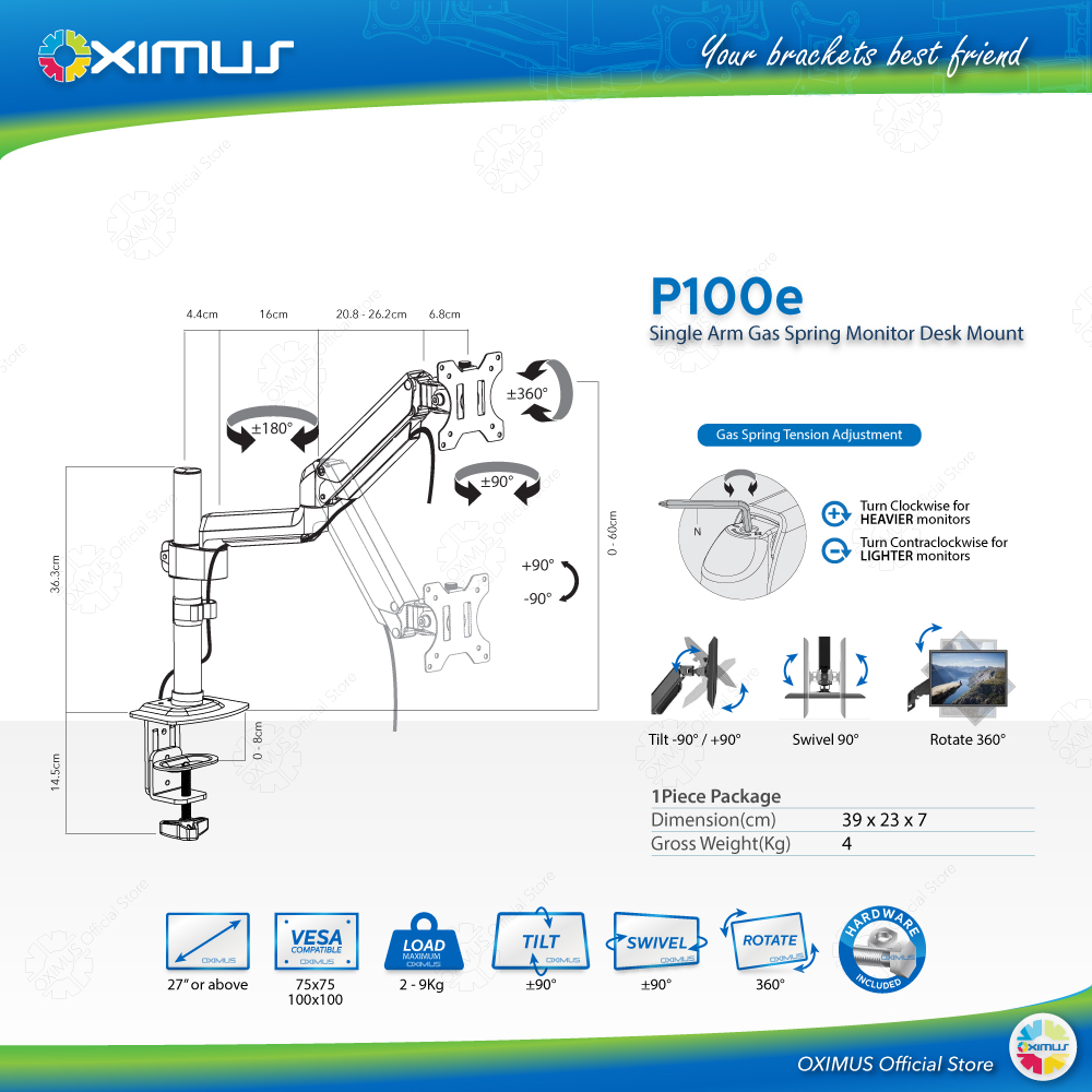 NEW ORIGINAL BRACKET MONITOR DESKMOUNT GAS SPRING OXIMUS P100e TILT SWIVEL ROTATE P100 e P 100 e
