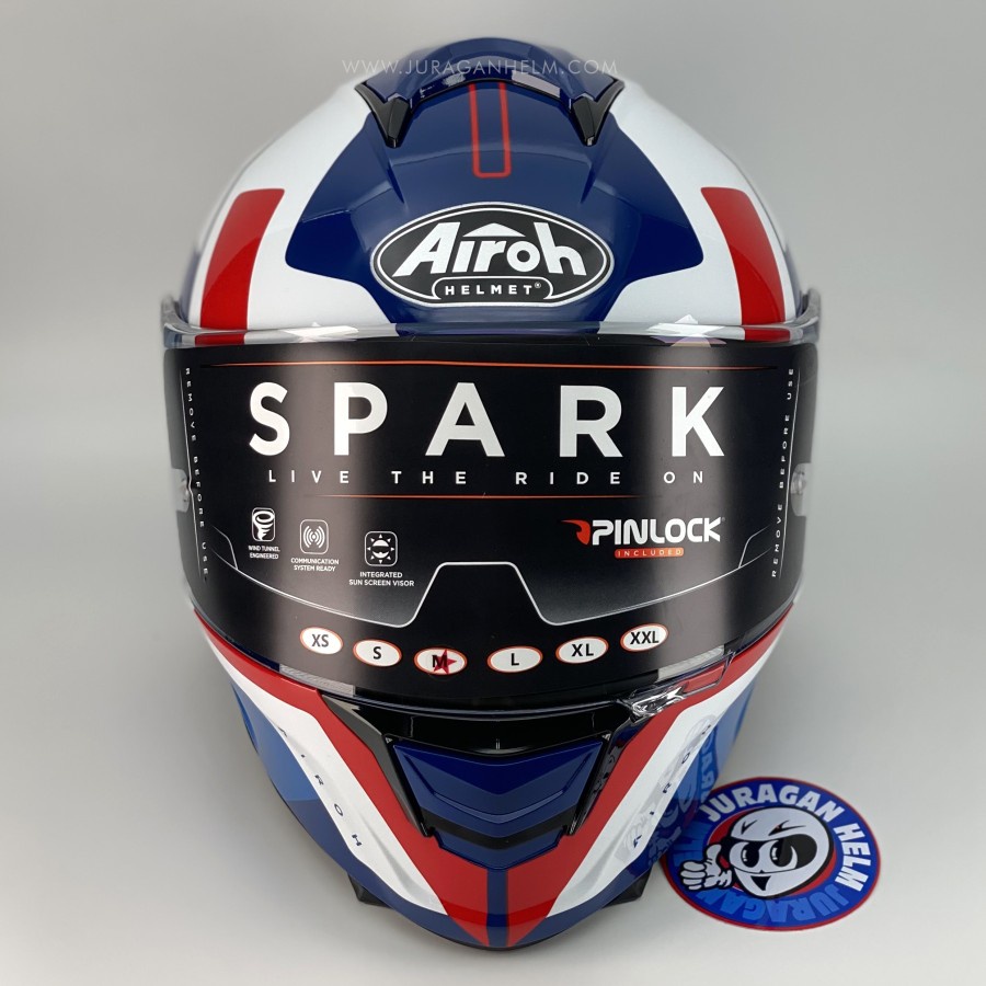 HELM AIROH SPARK SHOGUN BLUE RED GLOSS FULL FACE DOUBLE VISOR PAKET GANTENG SPESIAL EDITION SNI DOT ORIGINAL