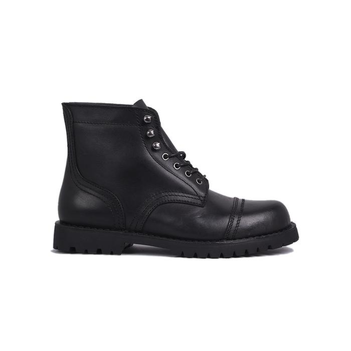 Luthor Black - Sepatu Kulit Pull Up PDH PDL Tactial Lapangan Dinas Casual Rugged Cap Toe Boots Karet