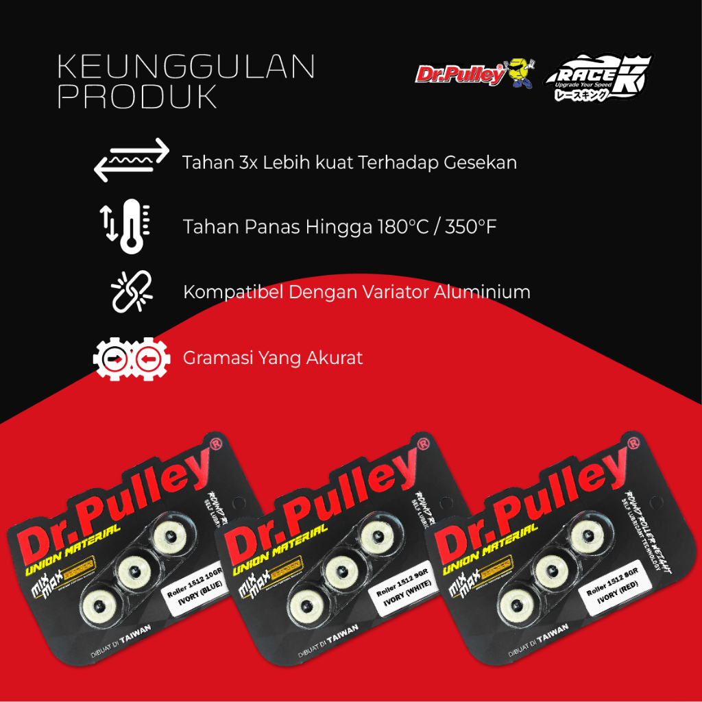 Dr Pulley Roller Mio Sporty J Smile Soul GT Fino Nouvo XRide 110 115 Tipe 1512 Per 3 Butir