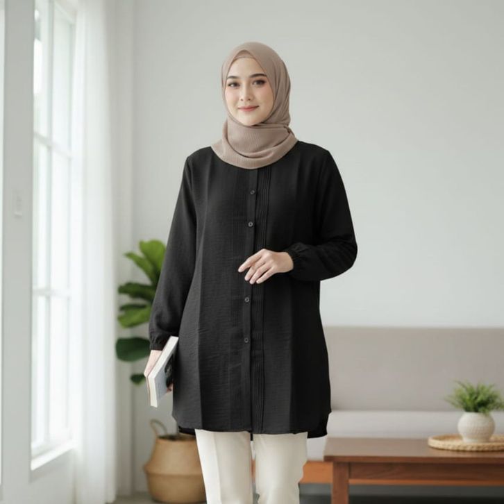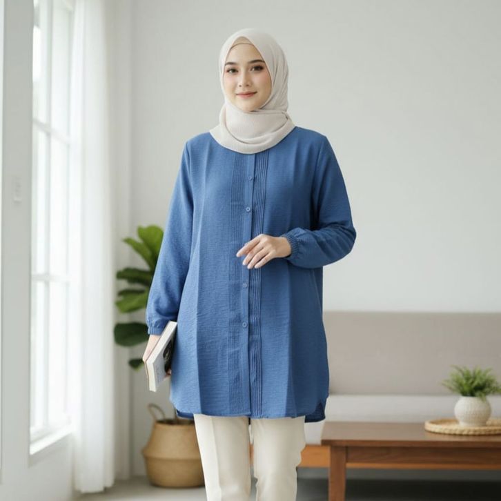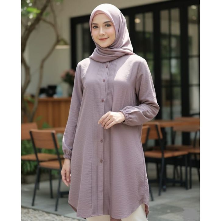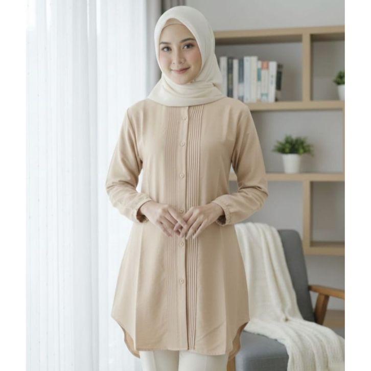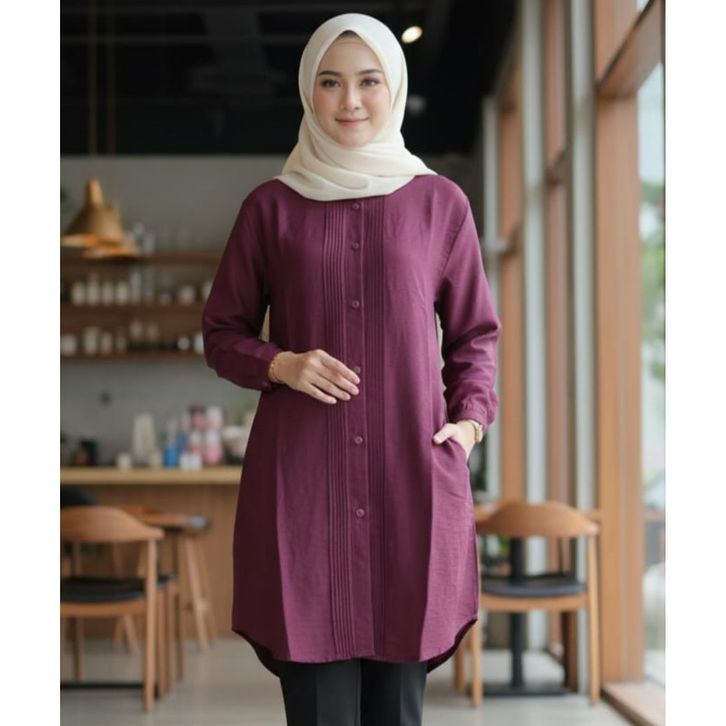 Baju Tunik Wanita Kalista Tunik Opnesel Full Kancing Pololinen Premium Size L XL XXL Long Tunik Baju Atasan Wanita