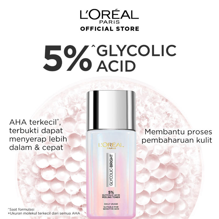 L'Oreal Paris Glycolic Bright Glowing Skincare Set Mencerahkan - Facial Foam 50 ml, Toner 65ml, Serum 15ml, Day & Night