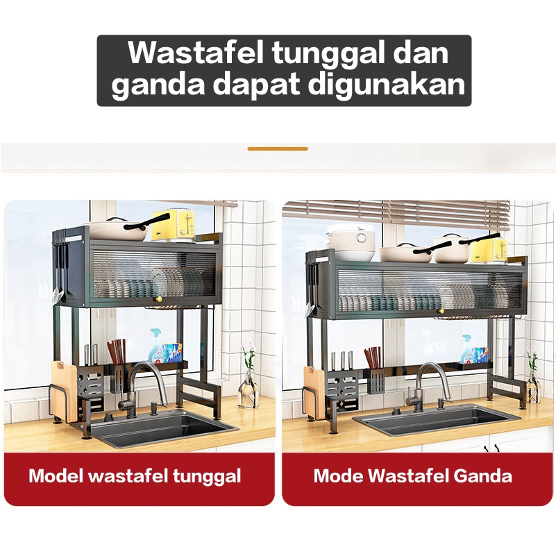 Rak Piring Wastafel Dapur Stainless Steel Multi-fungsi Dengan Penutup Rak Piring Tertutup Gratis Ongkir