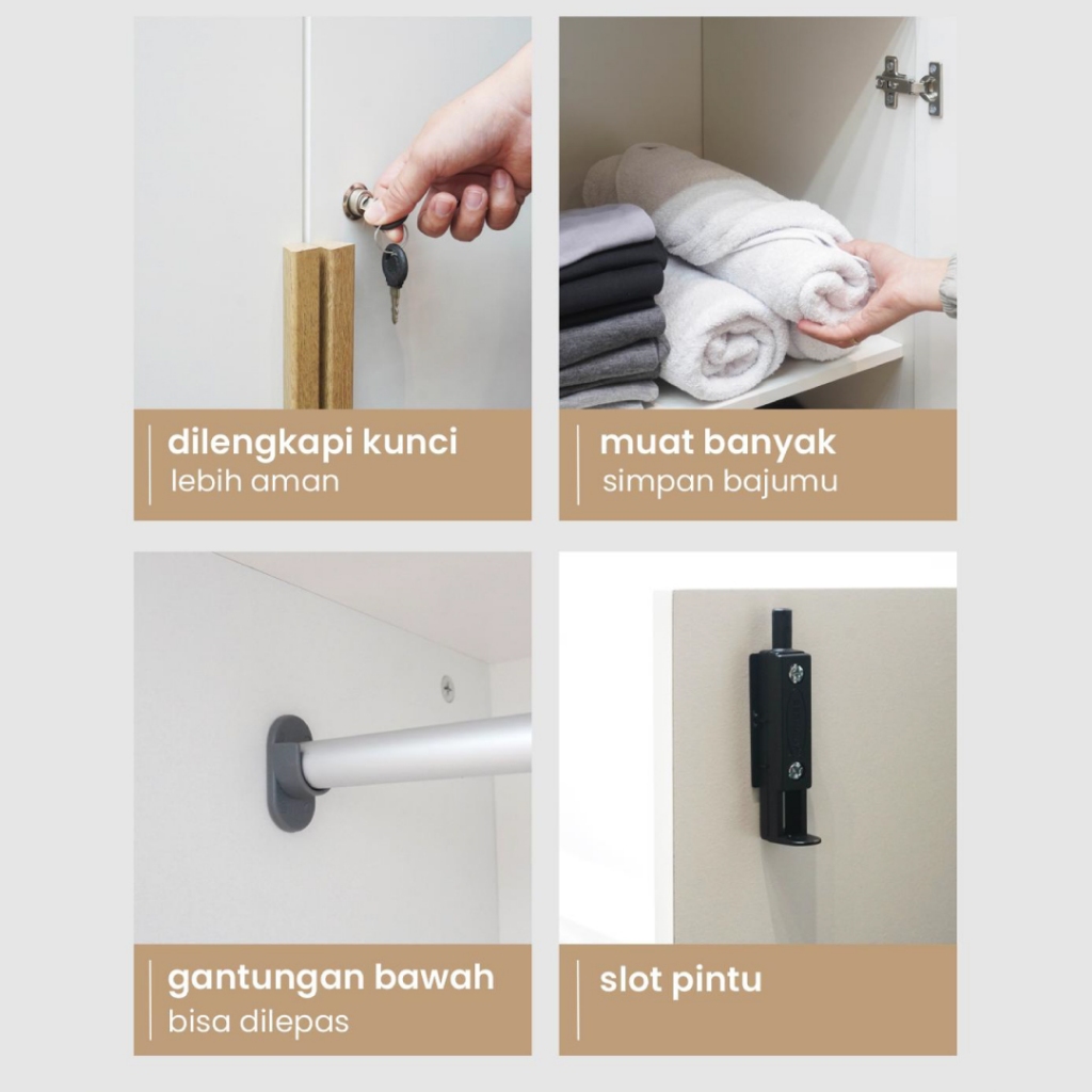 Lemari Pakaian 2 Pintu Pira Metropolis - YONA AVA 2P Gratis Ongkir