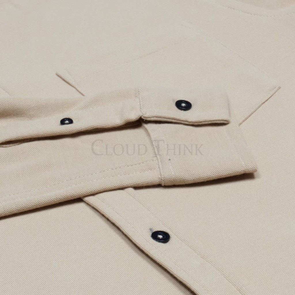 Kemeja Pria Lengan Panjang Katun Pique Cream | Original Cotton Pique Basic Shirt