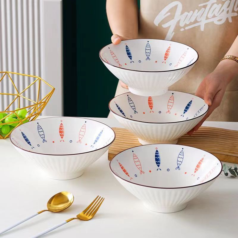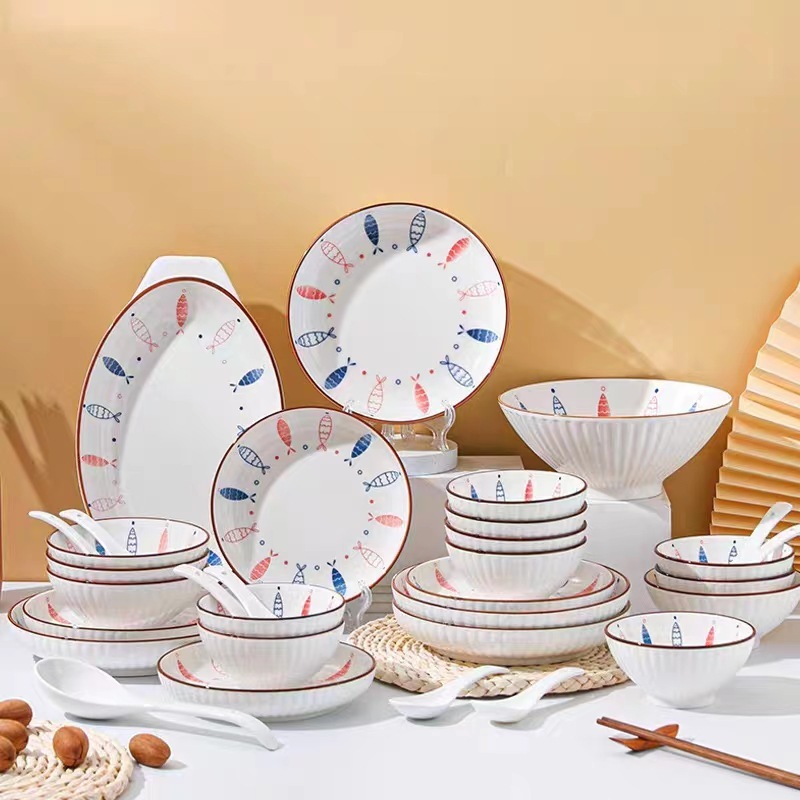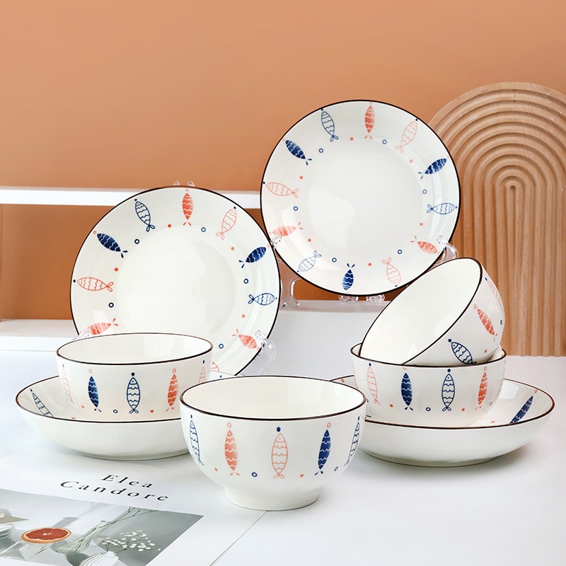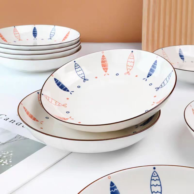 ASHOME Piring Keramik Makan Motif FRANC Series Blue fish / Piring Makan Jepang / Piring Makan Motif blue fish / Piring A