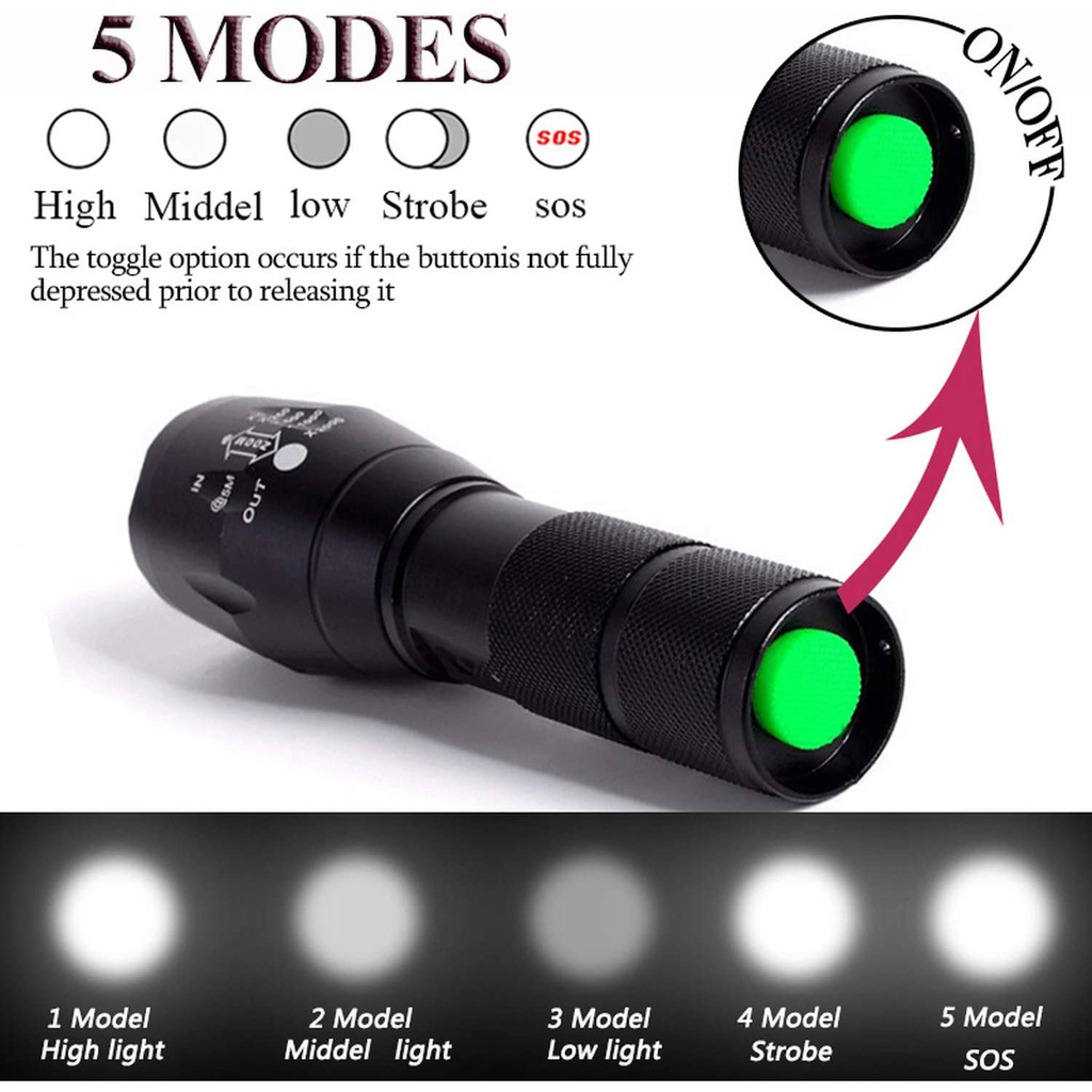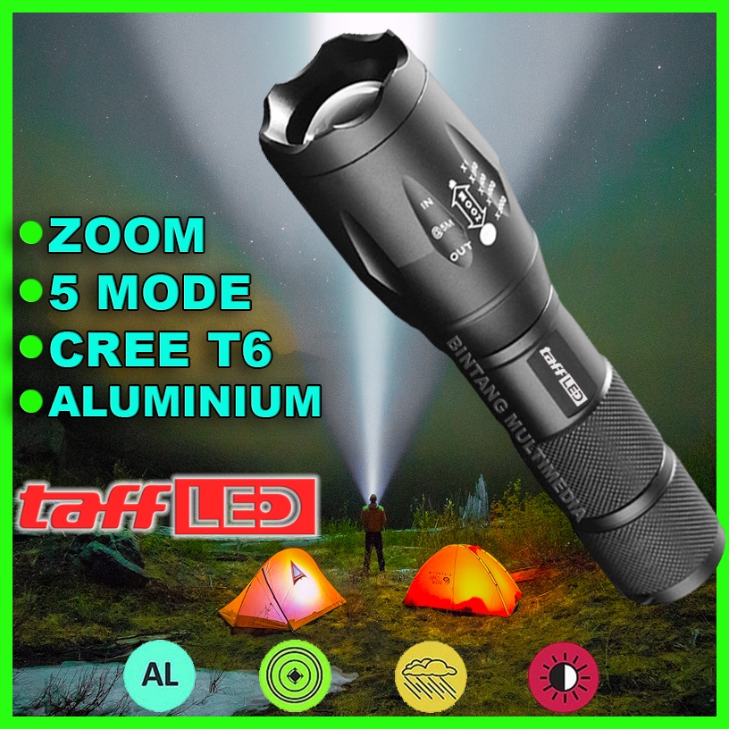 Senter LED Super Terang Zoom TaffLED E17 S XM-L T6 Lampu Camping Tactical Swat Police 3800 Lm