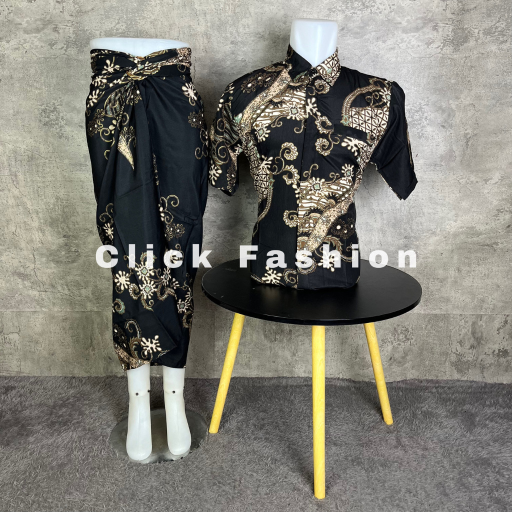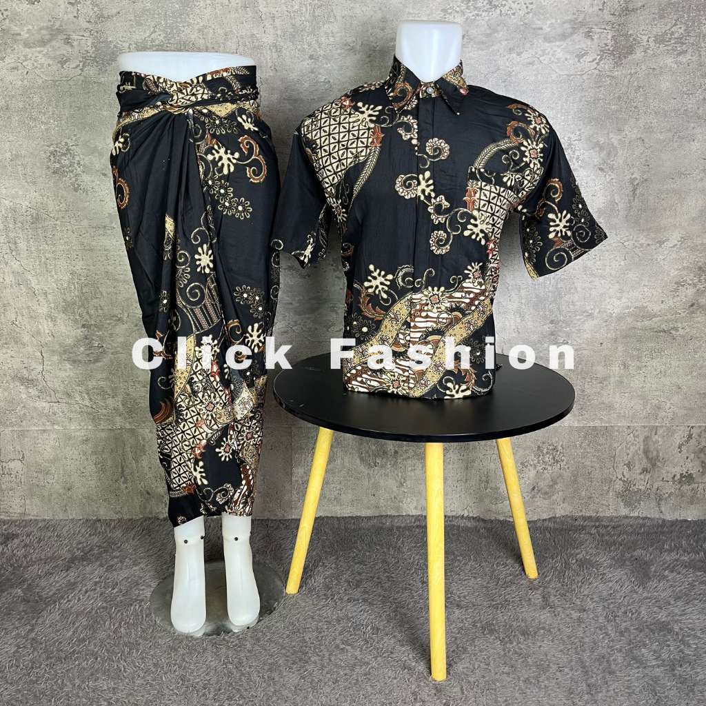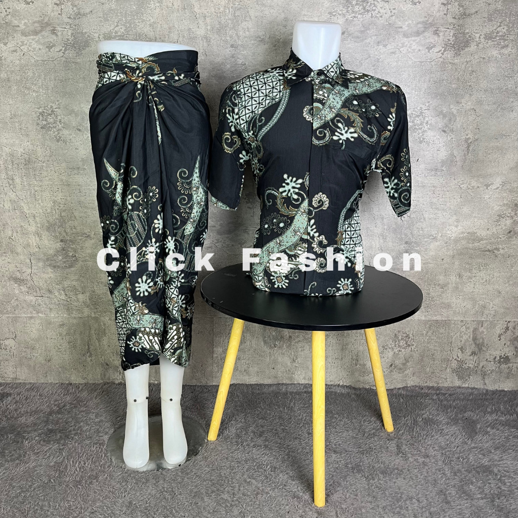 CLICK FASHION- BATIK COUPLE LENGAN PENDEK DAN ROK LILIT MOTIF TERBARU SERUNI
