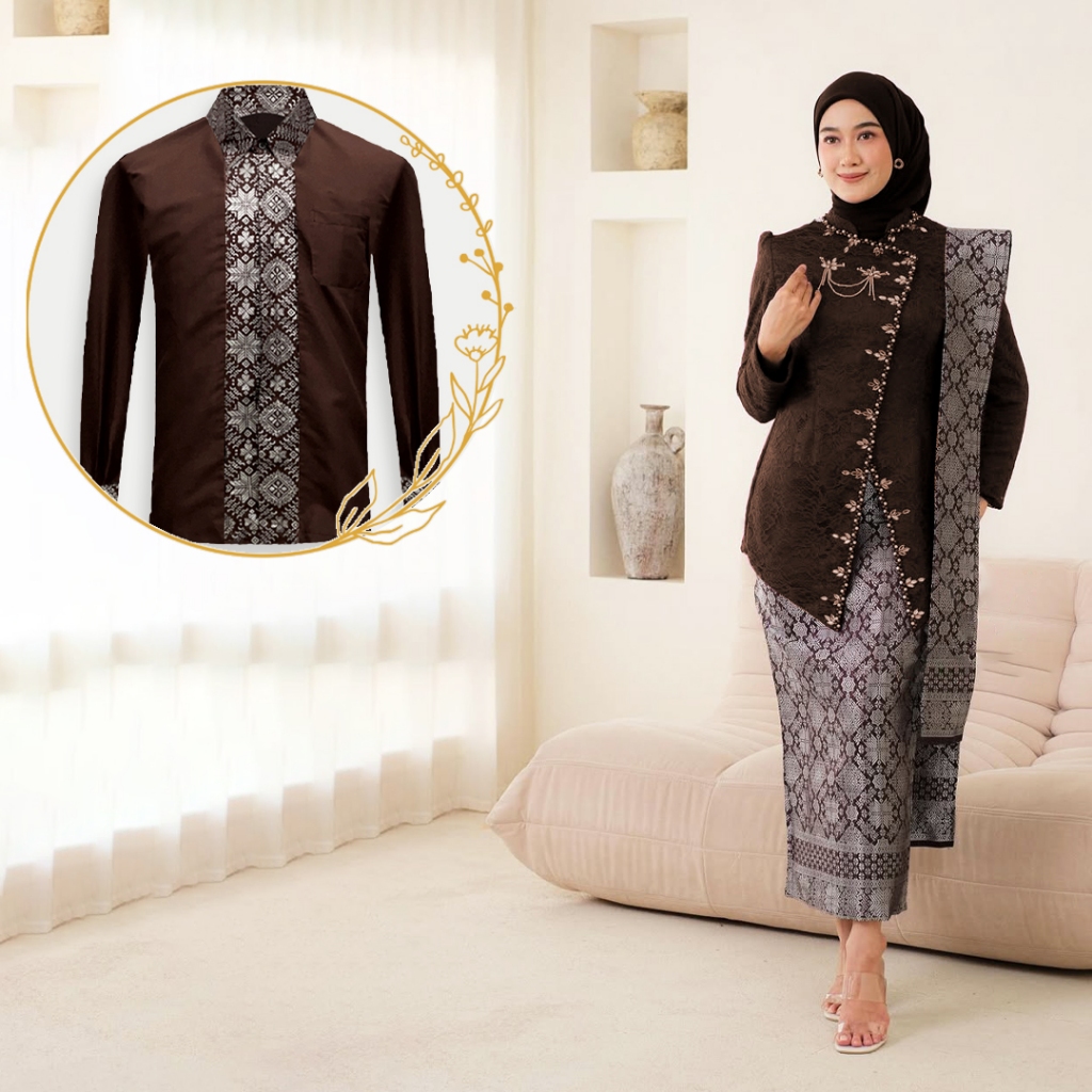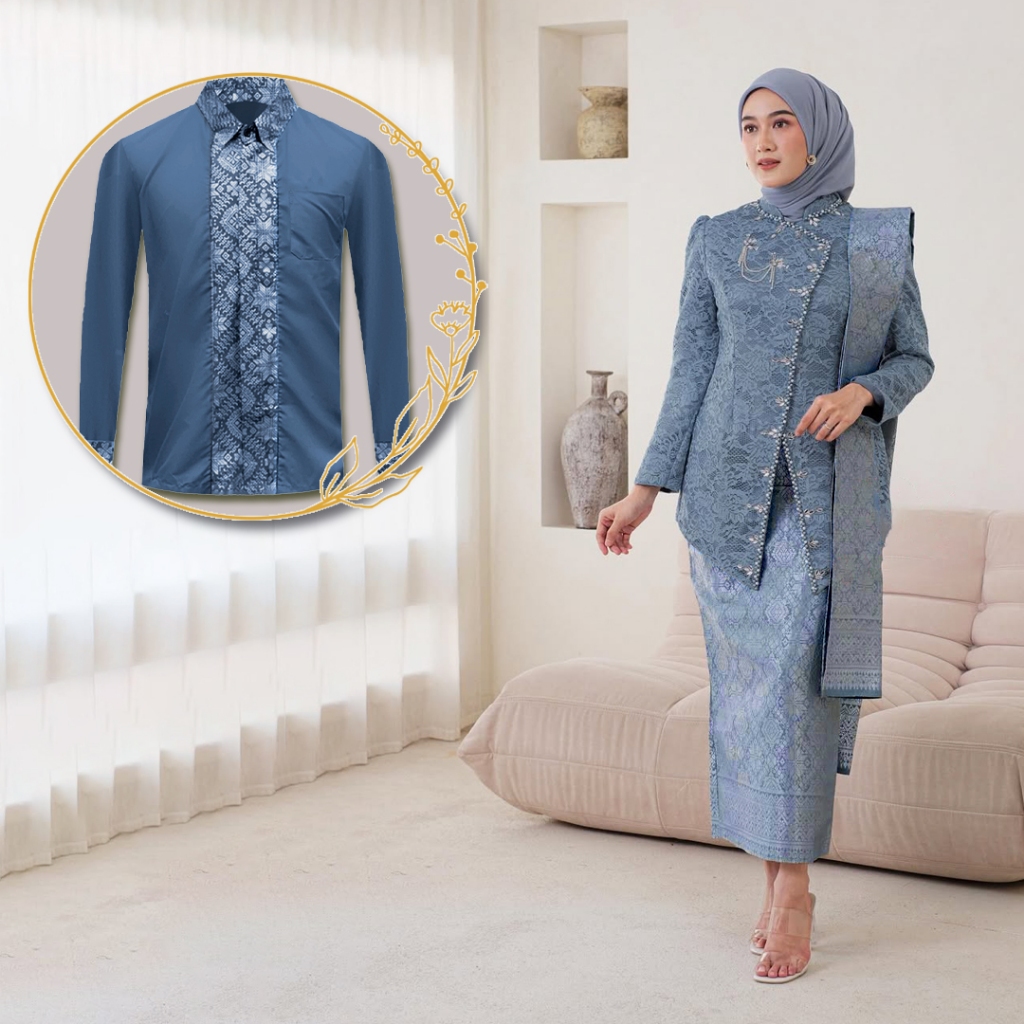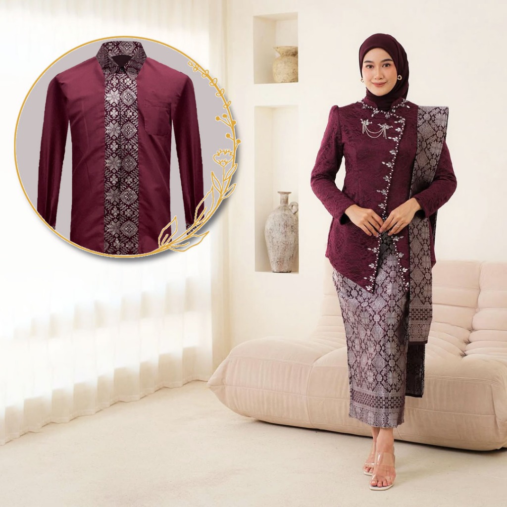 Batik Couple Termurah - Kebaya Couple Ayu Janggan Brokat Tulle Payet Setelan Rok Motif Songket Wisuda Kondangan Lam