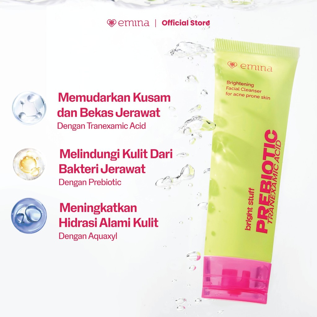 NEW Emina Prebiotic Tranexamic Acid Brightening Face Wash for Acne Prone Skin 50ml 100ml - Sabun Muka kulit berjerawat