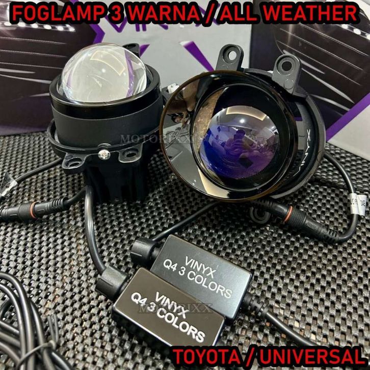 ORIGINAL VINYX BILED FOGLAMP Q4 3 WARNA / ALL WHEATHER 3 INCHI BLUELENS FOGLAMP PROJECTOR HIGH LO PNP TOYOTA HONDA UNIV