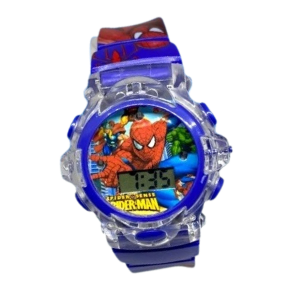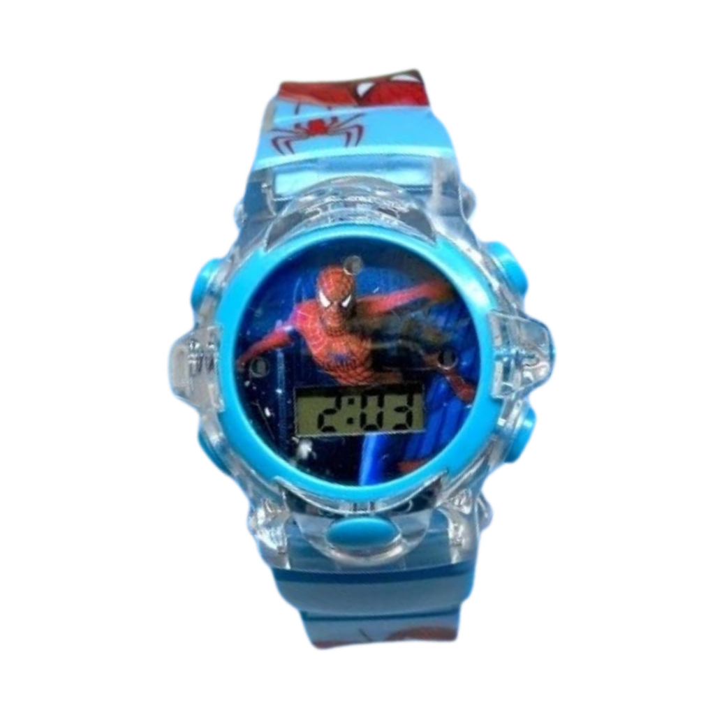 jam tangan anak laki laki spiderman lampu musik menyala keren 5 th 12 tahun sd tk