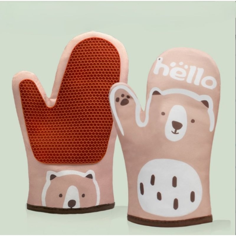 1 set ( 2pcs ) Sarung tangan oven tahan panas dilengkapi silikon
