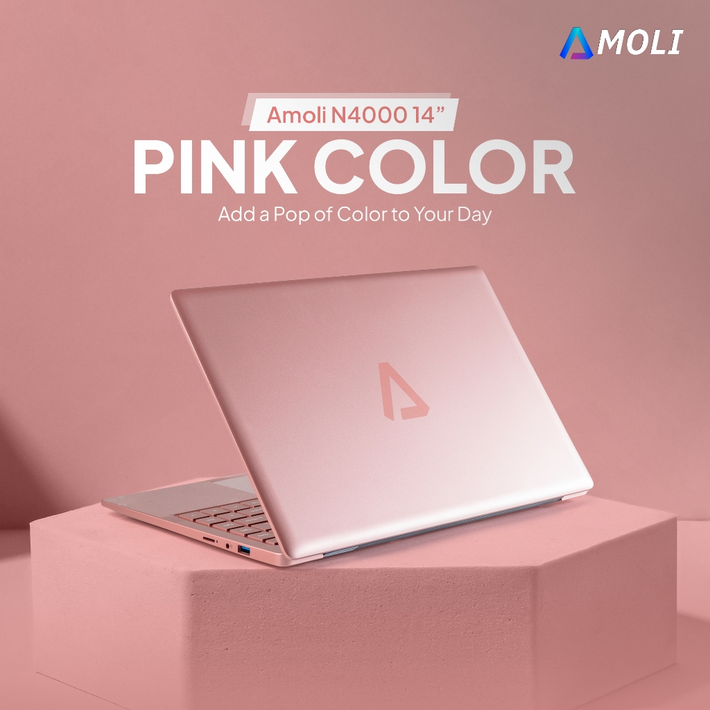 laptop amoli baru laptop 14 inch layar hd windows 11 pink silver hitam laptop ram 8gb +256gbssd intel n4000
