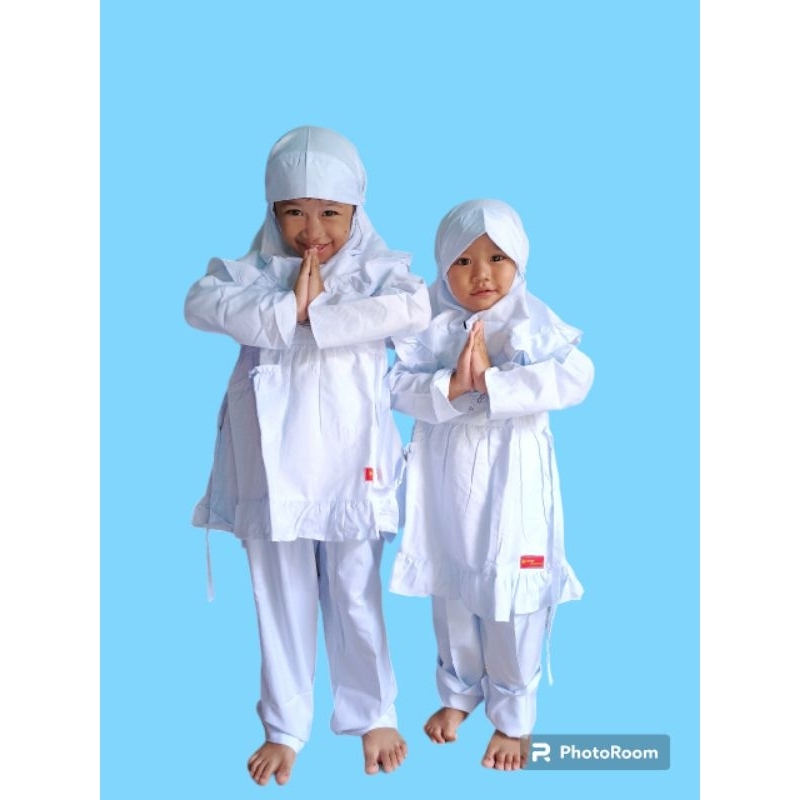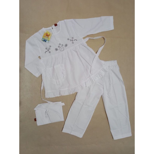 Setelan Baju Muslim Putih Anak Perempuan Manasik Katun