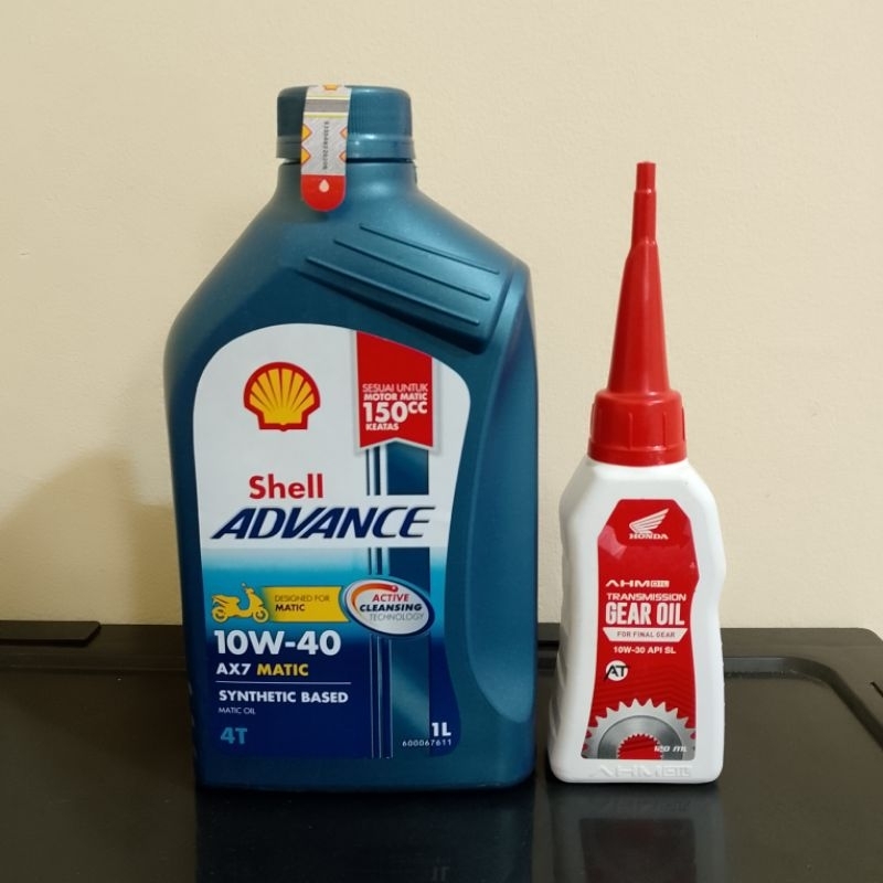OLI MESIN SHELL ADVANCE AX7 1 LITER + AHM GIR BOK 120ML OLI PERLUMAS MESIN VARIO , PCX , STILO