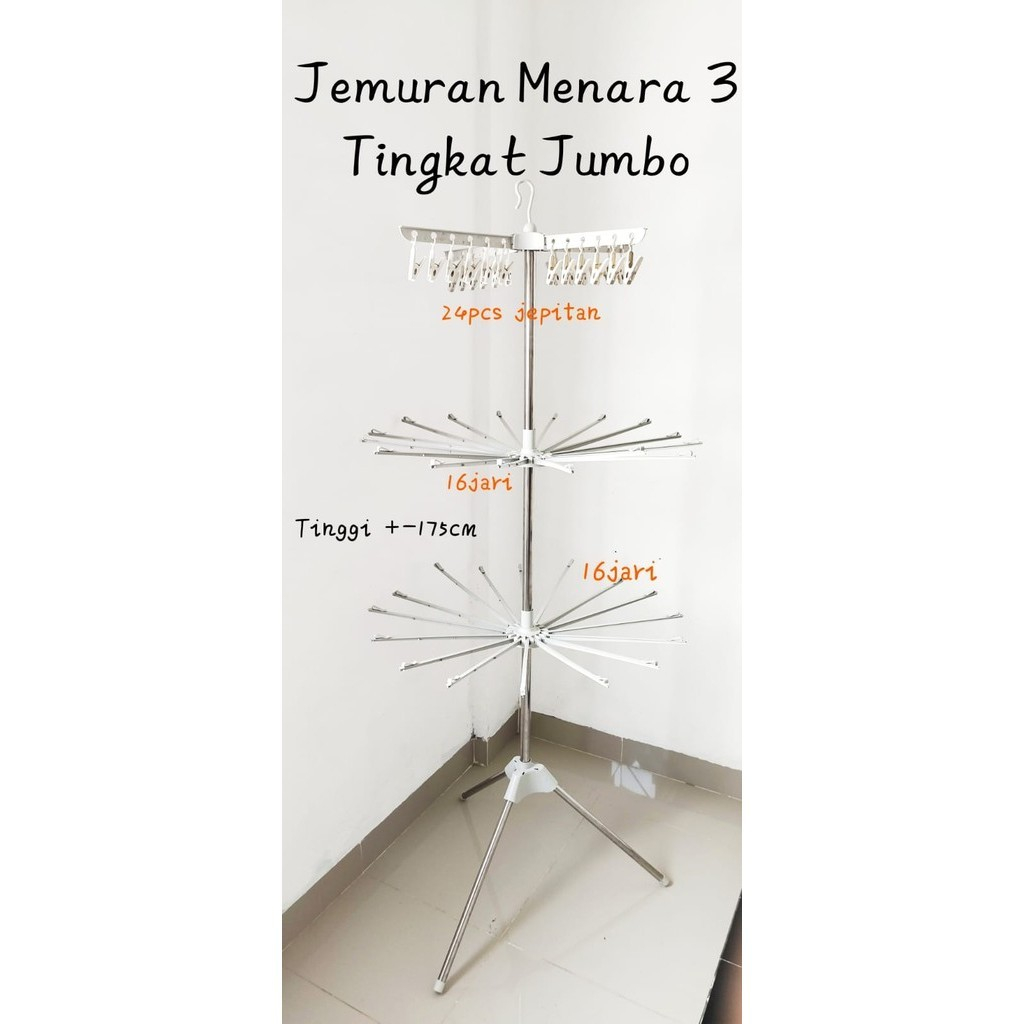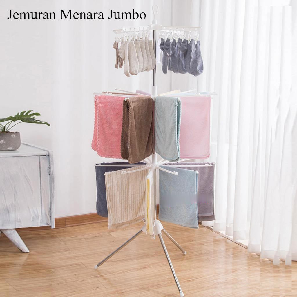 Jemuran Menara Jumbo Kokoh Kuat /Jemuran Baju Lipat Bayi Kaus Kaki Baju Handuk Serbaa 3 Tingkat