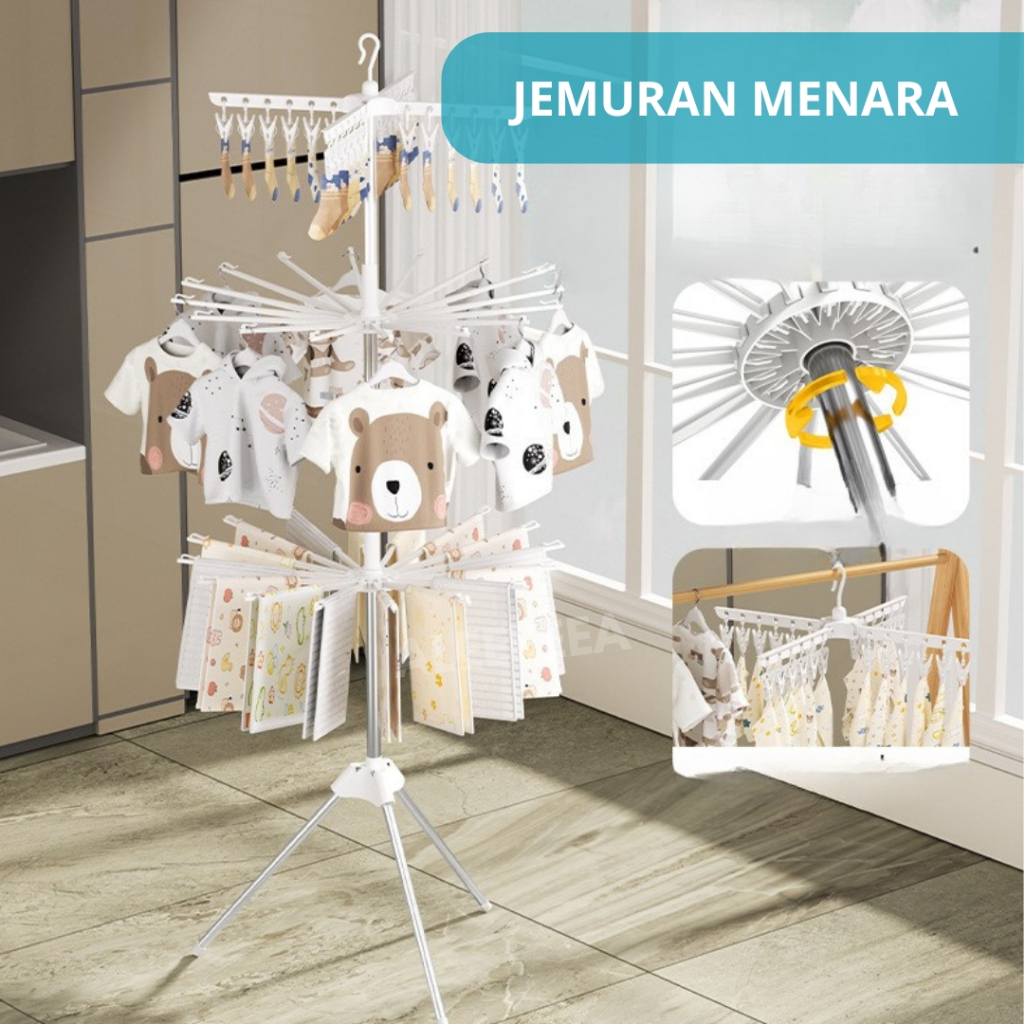Jemuran Menara Bayi Lipat - Jemuran Portable 3 Tingkat untuk Indoor & Outdoor Jemuran Bayi Portable 3 Tingkat - Jemuran