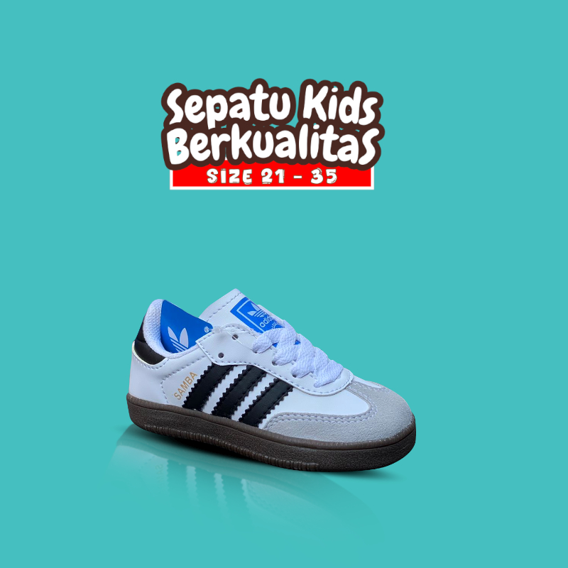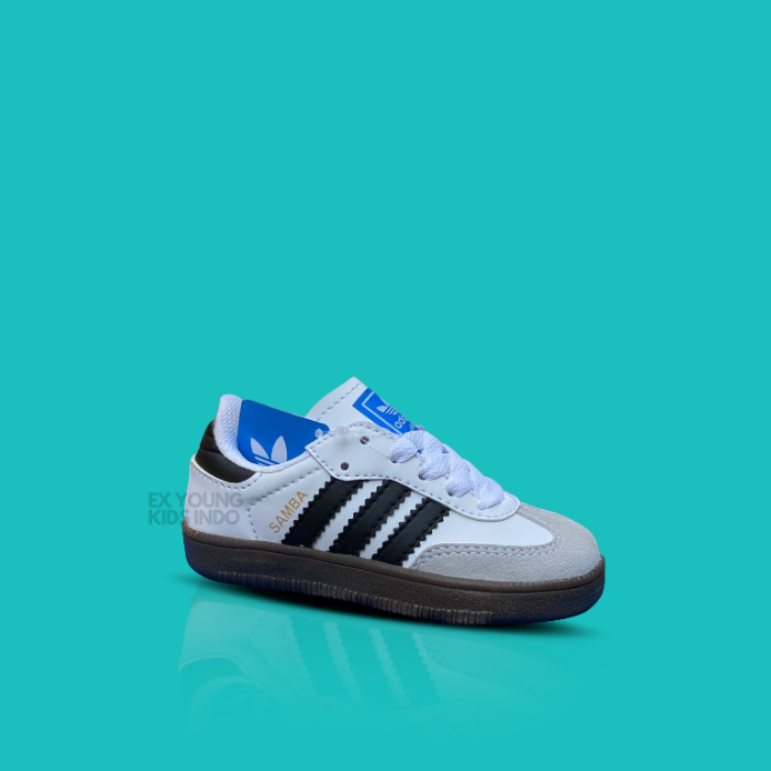 Sepatu Anak Samba og Kids 1- 9 thn - Bahan Sintetis & Suede, Gratis Kaos Kaki, Box Eksklusif - White Black putih hitam