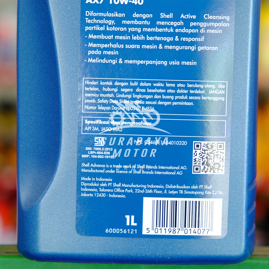 Oli SHELL AX7 1L 4T Sae 10W-40 Advance 1000 ML Sport Sepeda Motor Vixion CB150R CBR150