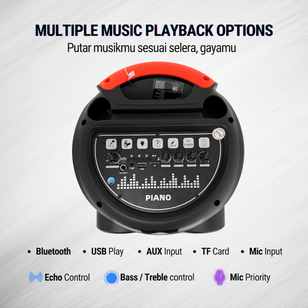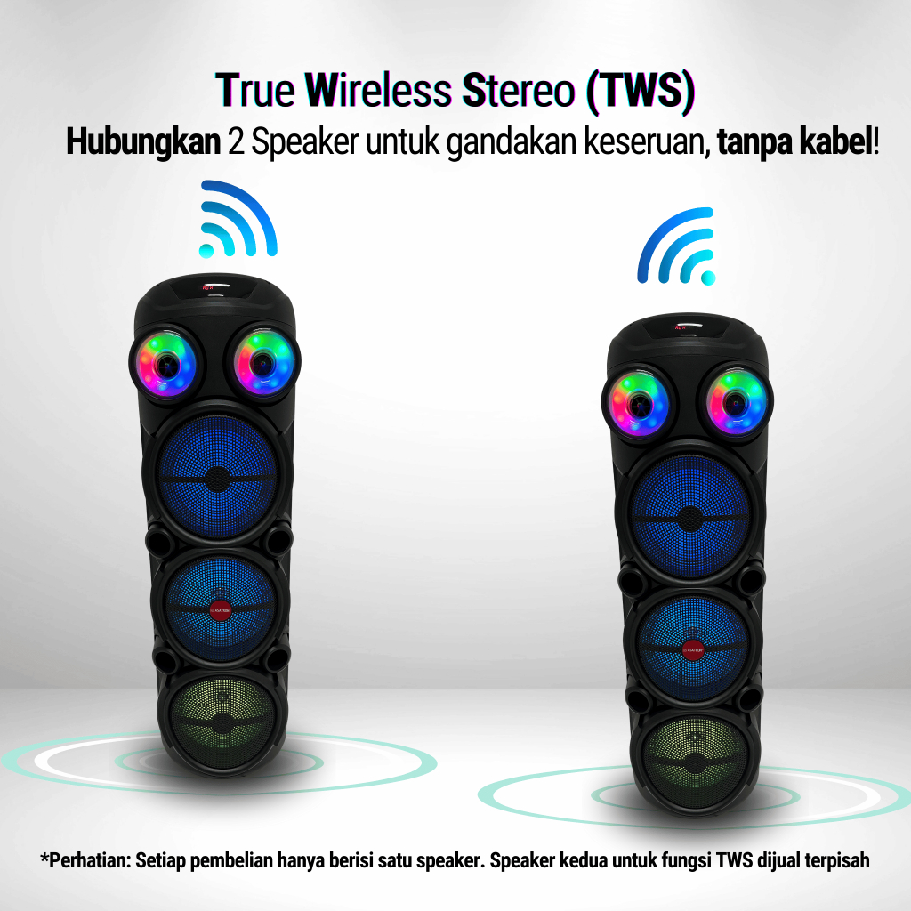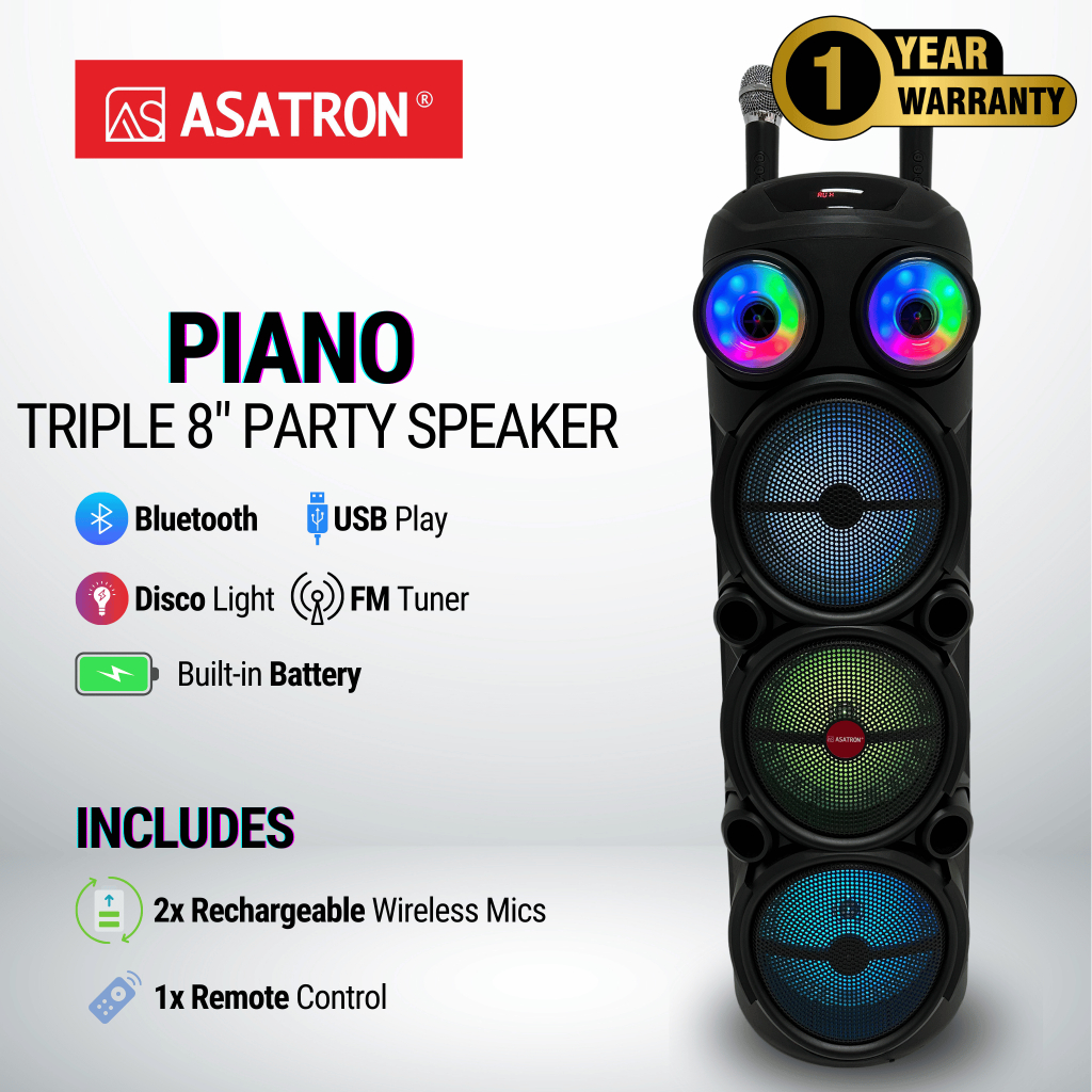 Asatron Piano Triple 8 Inch Bluetooth Party Speaker with 2 Wireless Mic Rechargeable