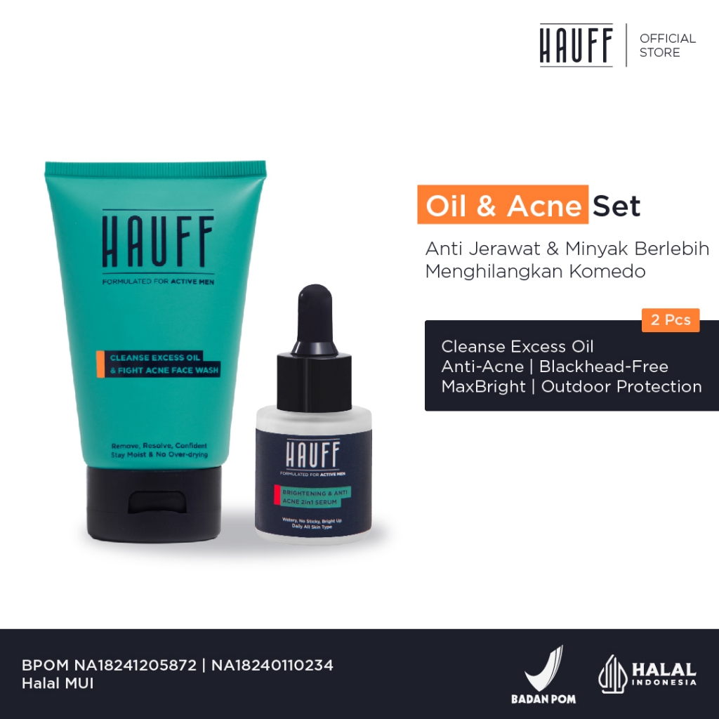 hauff Oil & Acne Set Paket Skincare Pria Anti Jerawat & Minyak Berlebih Menghilangkan Komedo BPOM BEST SELLER