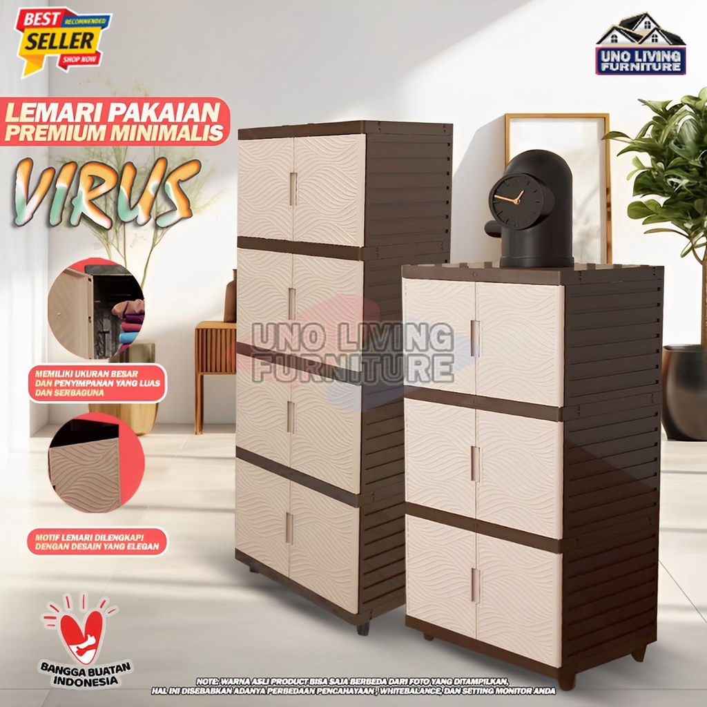 LEMARI PAKAIAN PLASTIK 4 SUSUN LEMARI KINGDOM VIRUS 4 SUSUN