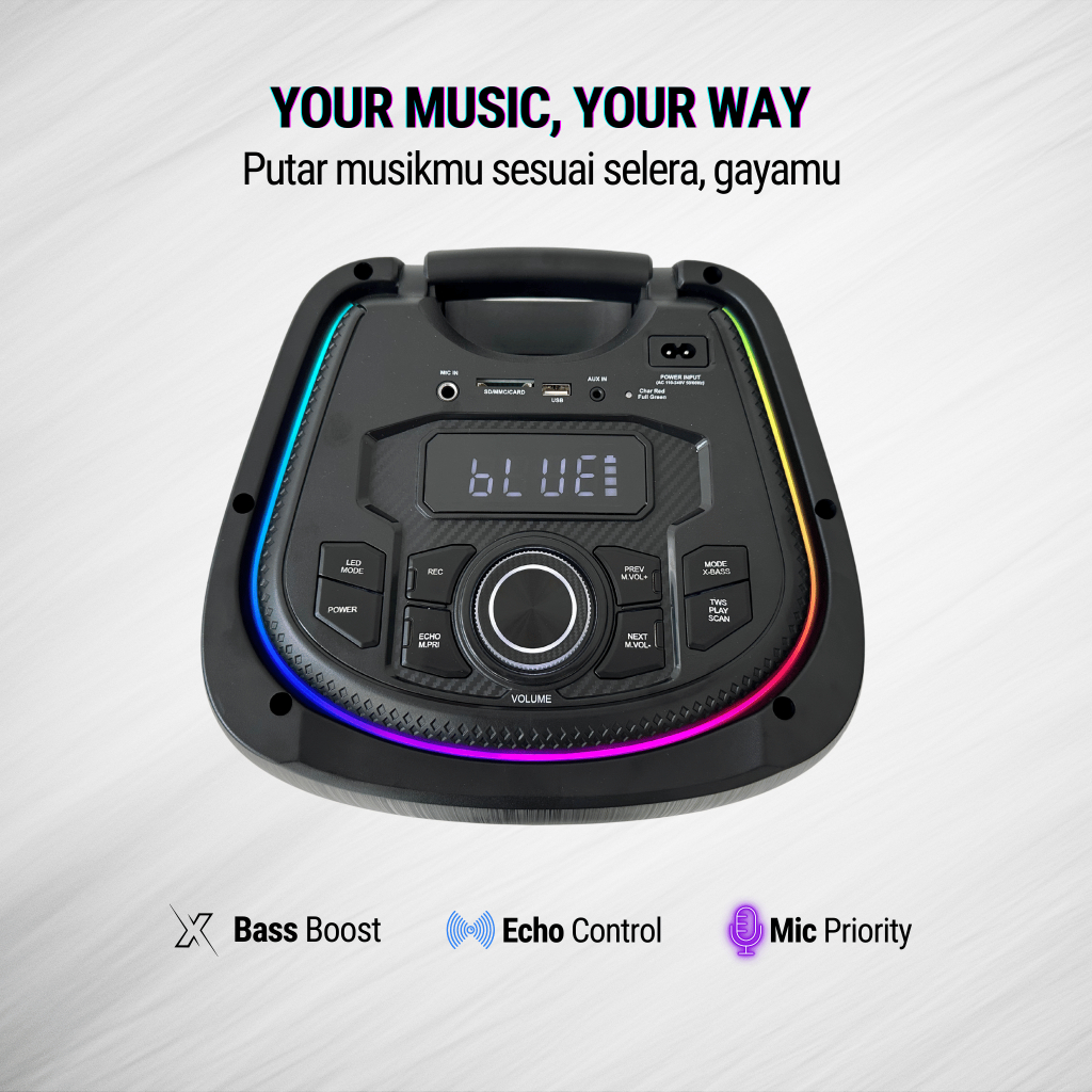 Asatron Crown Dual 10 Inch Bluetooth Party Speaker with 2 Wireless Mic