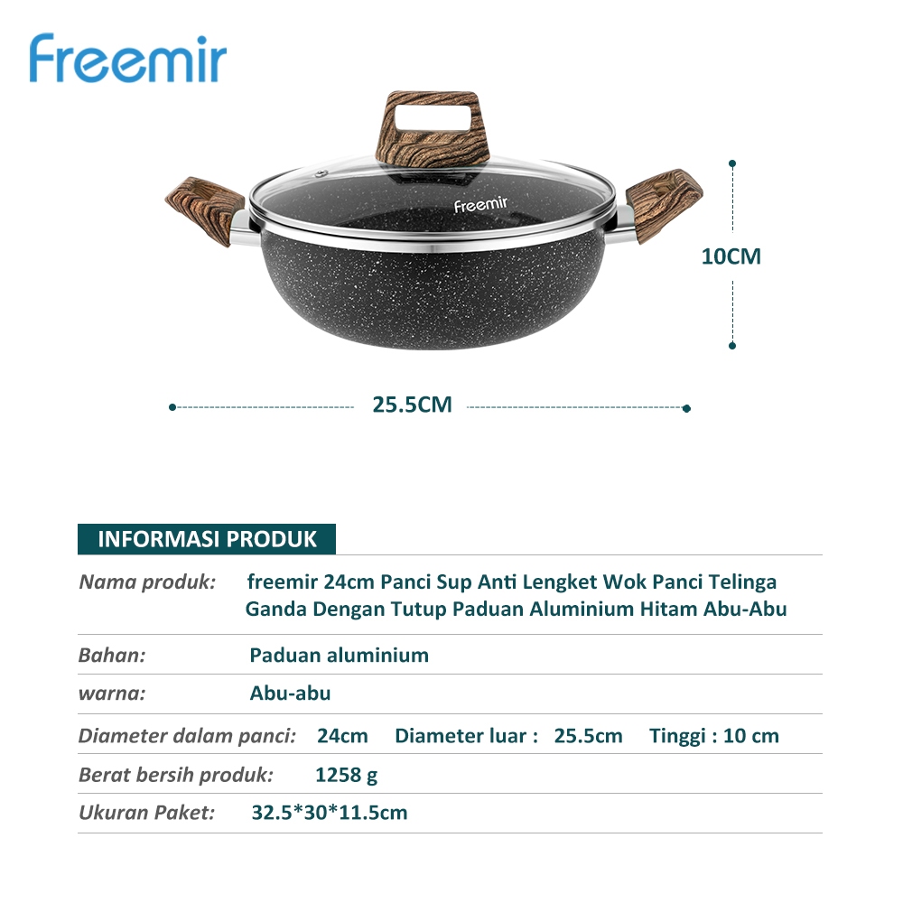 Special freemir Wajan Panci Kuping Kukus Granite Hitam Lebar24cm Tinggi 10cm Serbaguna Anti Lengket