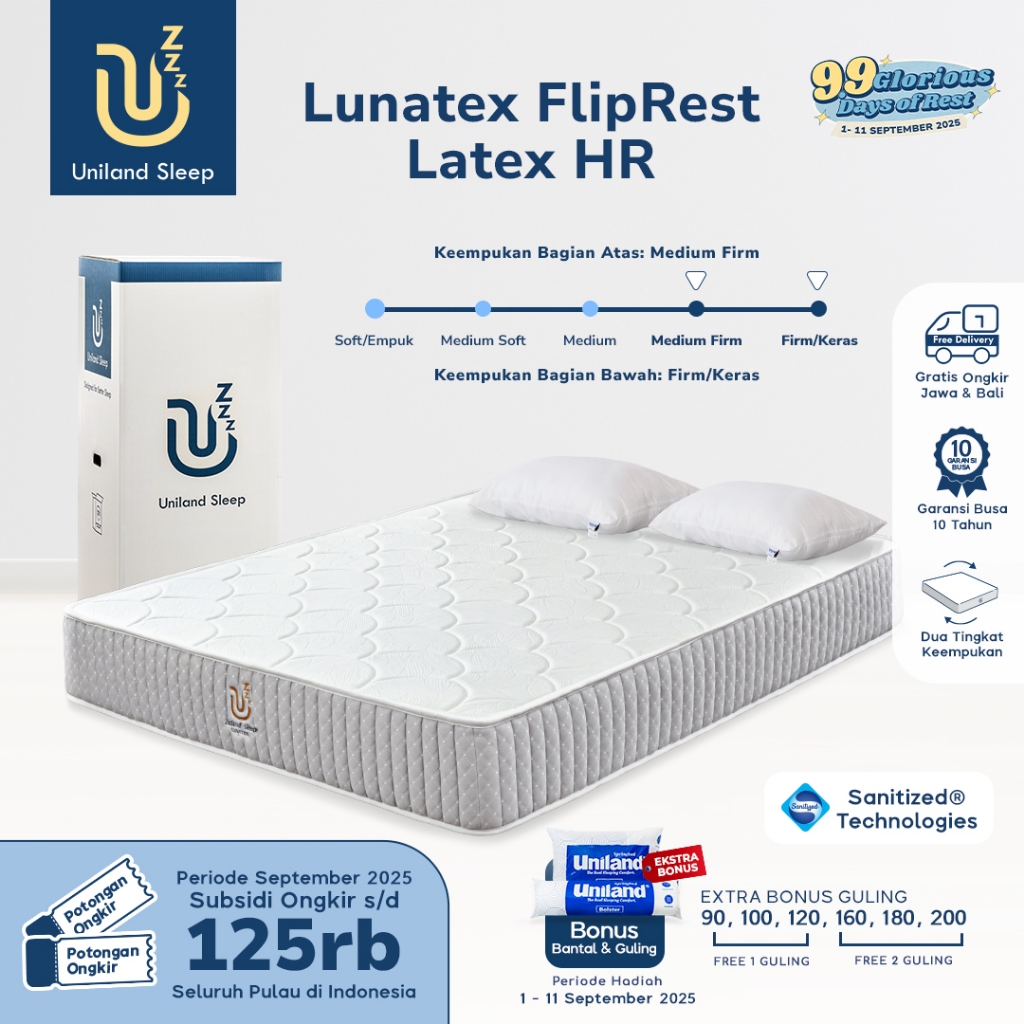 Kasur Busa Uniland Sleep Lunatex FlipRest 25cm Latex HR / Dual Feel