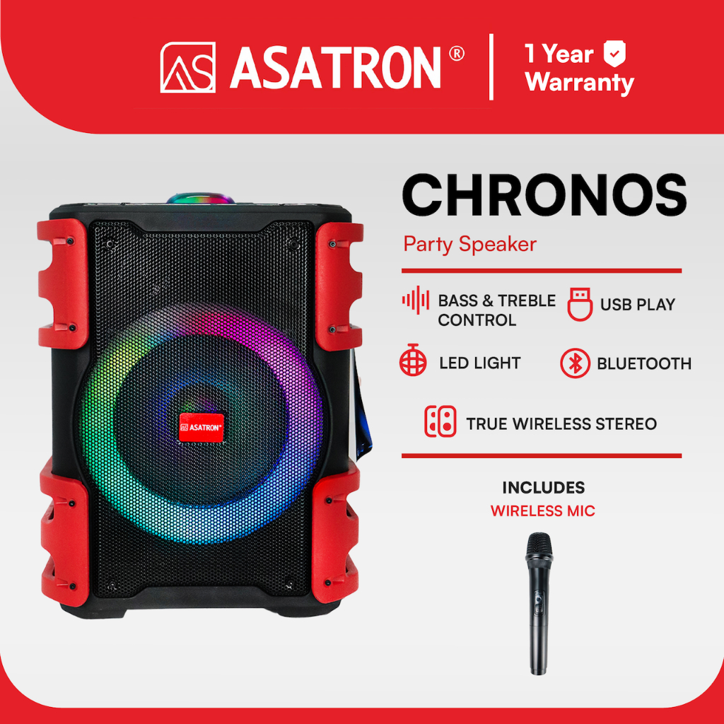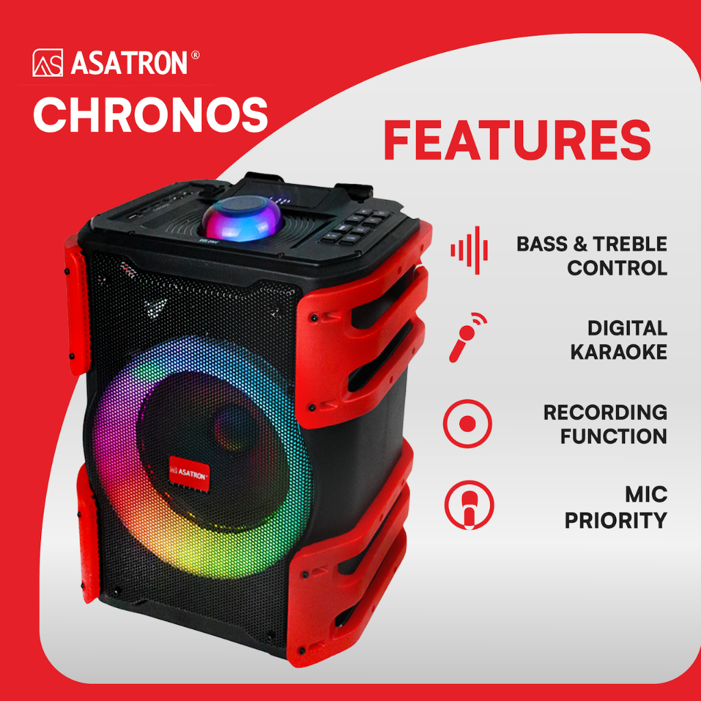 Asatron Chronos 8 Inch Bluetooth Karaoke Party Speaker with 1 Wireless Mic TWS Backpack Strap