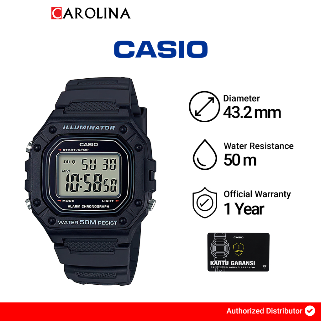 JAM TANGAN PRIA Jam Tangan Pria Casio W-218H-1A Digital Dial Black Resin Band