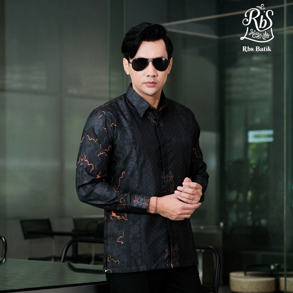 Kemeja Batik Pria Slimfit Hitam Widura Lengan Panjang Lapis Furing Batik Modern Bahan ASLI ORIGINAL TERLARIS