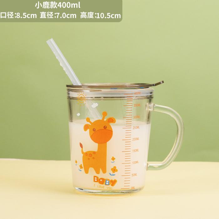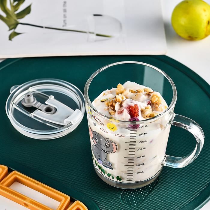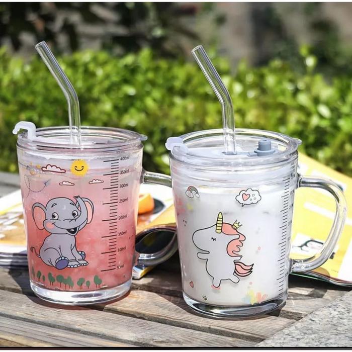 PROMO TERBATAS GELAS KACA ANAK SEDOTAN MOTIF ANIMAL 400ML GELAS LUCU CANGKIR MUG GELAS GAJAH